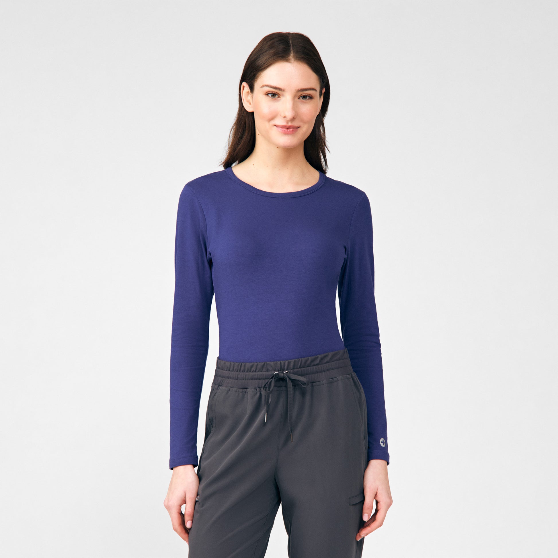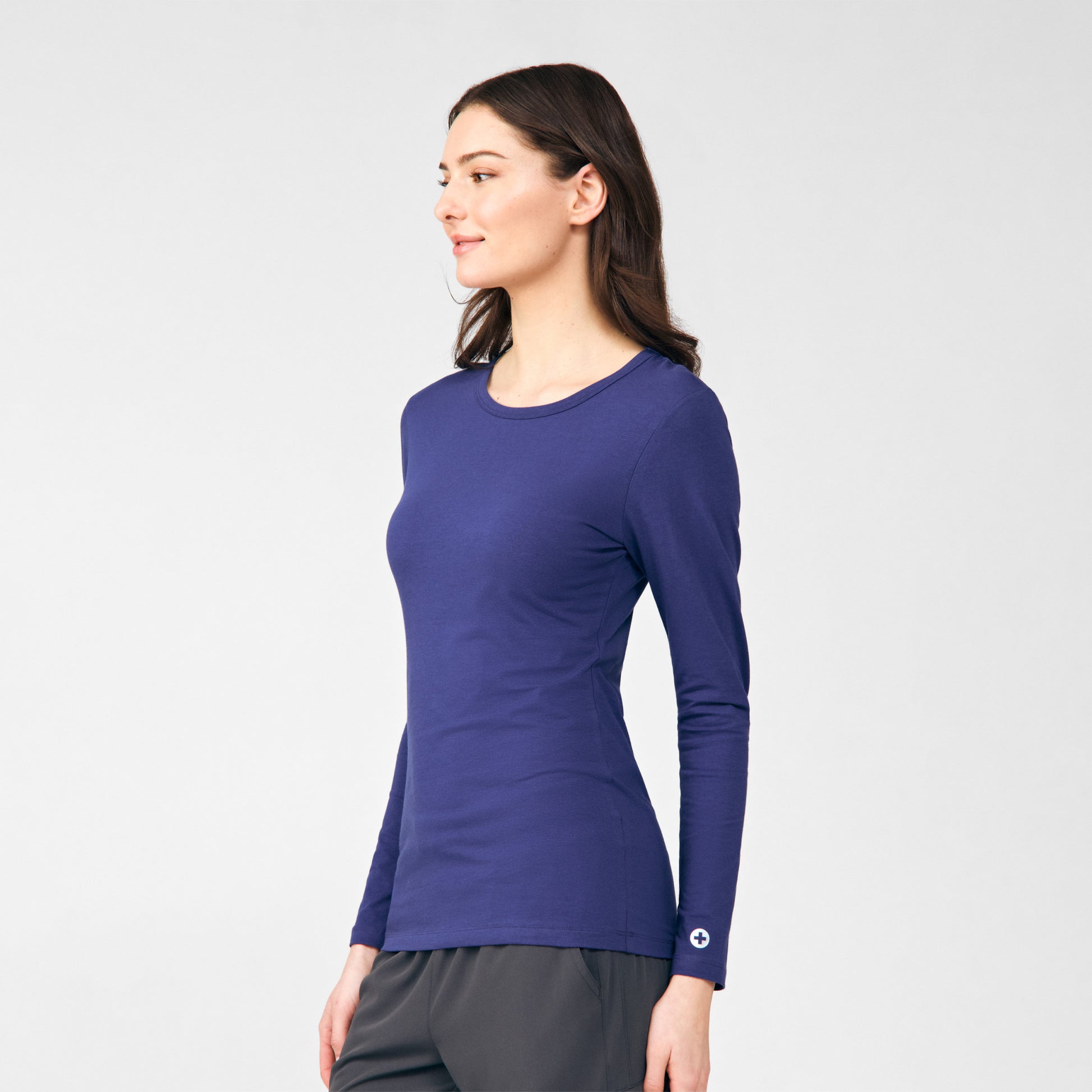 Designed and crafted for exceptional individuals. This breathable, extra soft jersey knit long-sleeve tee is contoured to fit your body and complement your shape. Meant to be worn from day to night, this crew neck under scrub offers 4-way stretch for extra mobility and comfort so you can perform your best at any time. Exceptional quality, exceptional style for exceptional people.