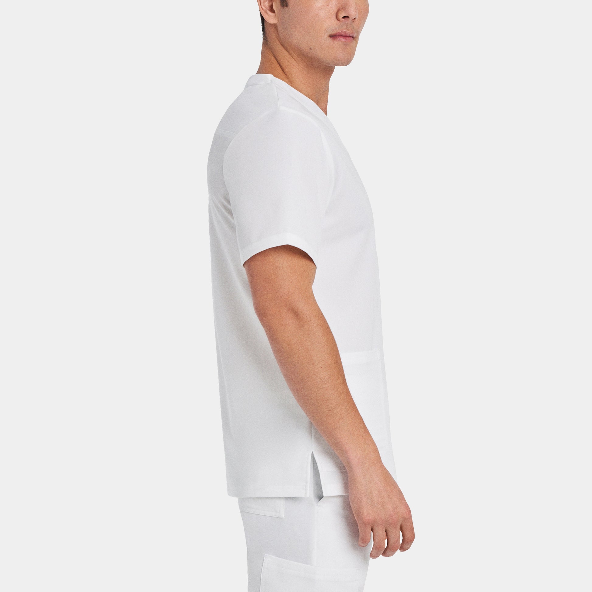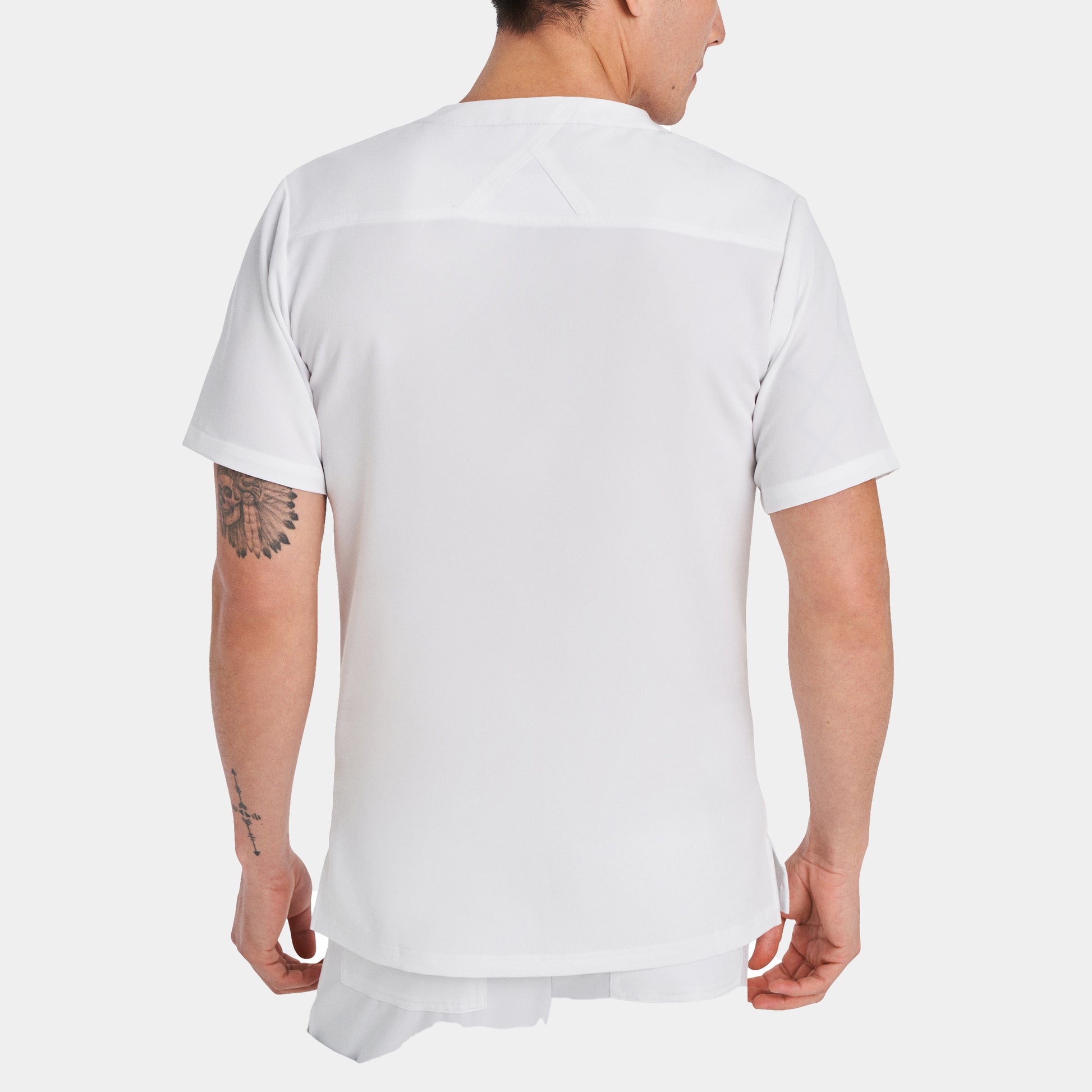 Our V-Tess men's 3-pocket v-neck scrub top features a breathable 4-way super stretch for maximum comfort and flexibility and vibrant colors that last wash after wash. With a fade resistant and super stretch material, this scrub top comes in a contemporary slim fit with a back yoke for a flattering shape. Not to mention, a contrasting stripe detail on the chest pocket and side vents for extra ease of movement.