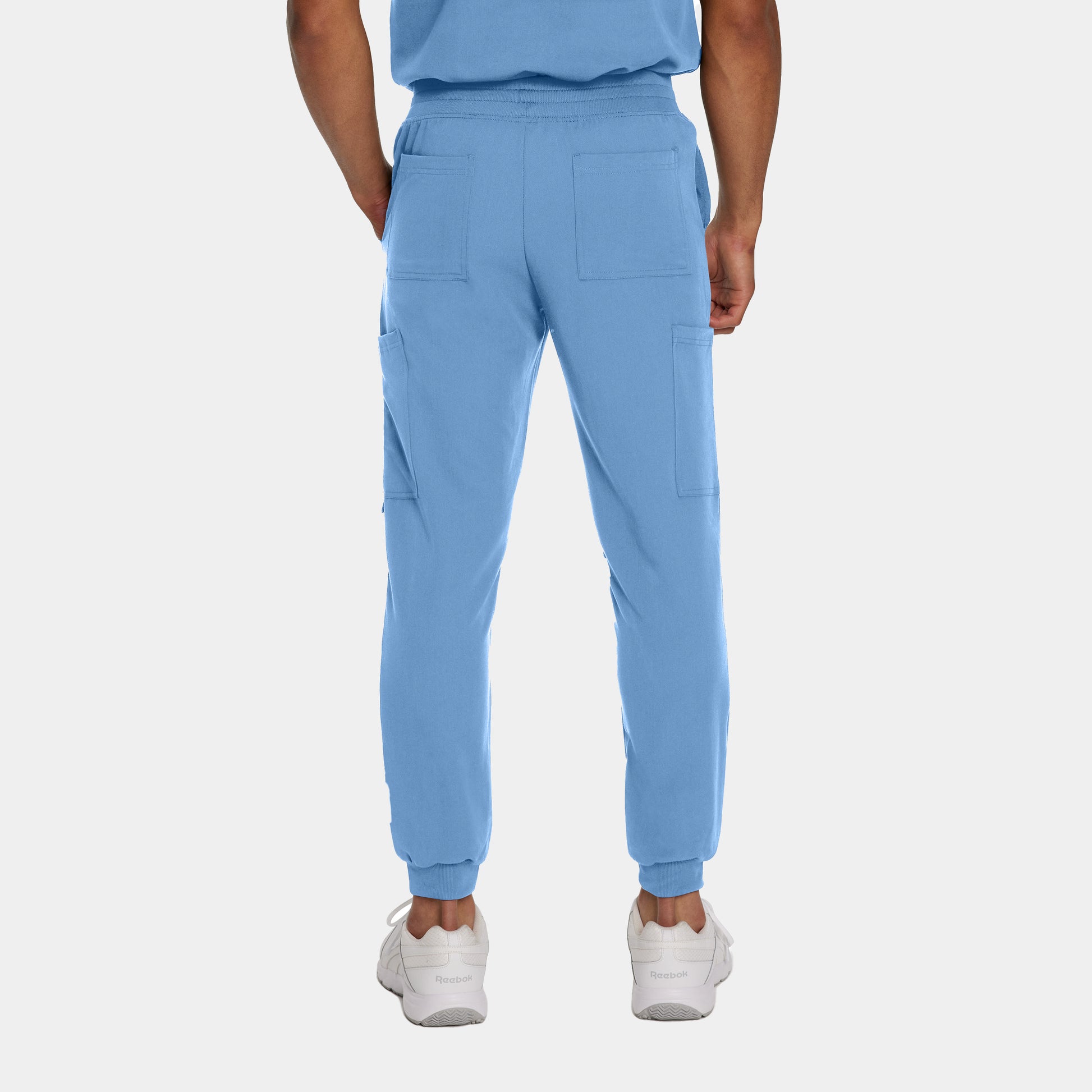 Our athletic V-Tess men's banded-bottom jogger scrub pants come with a mid-rise triple-elastic waist with a drawstring for a secure fit. With 6 pockets and a rib-knit waistband and leg cuffs, these super stretch and breathable joggers support healthcare professionals’ energy all day.