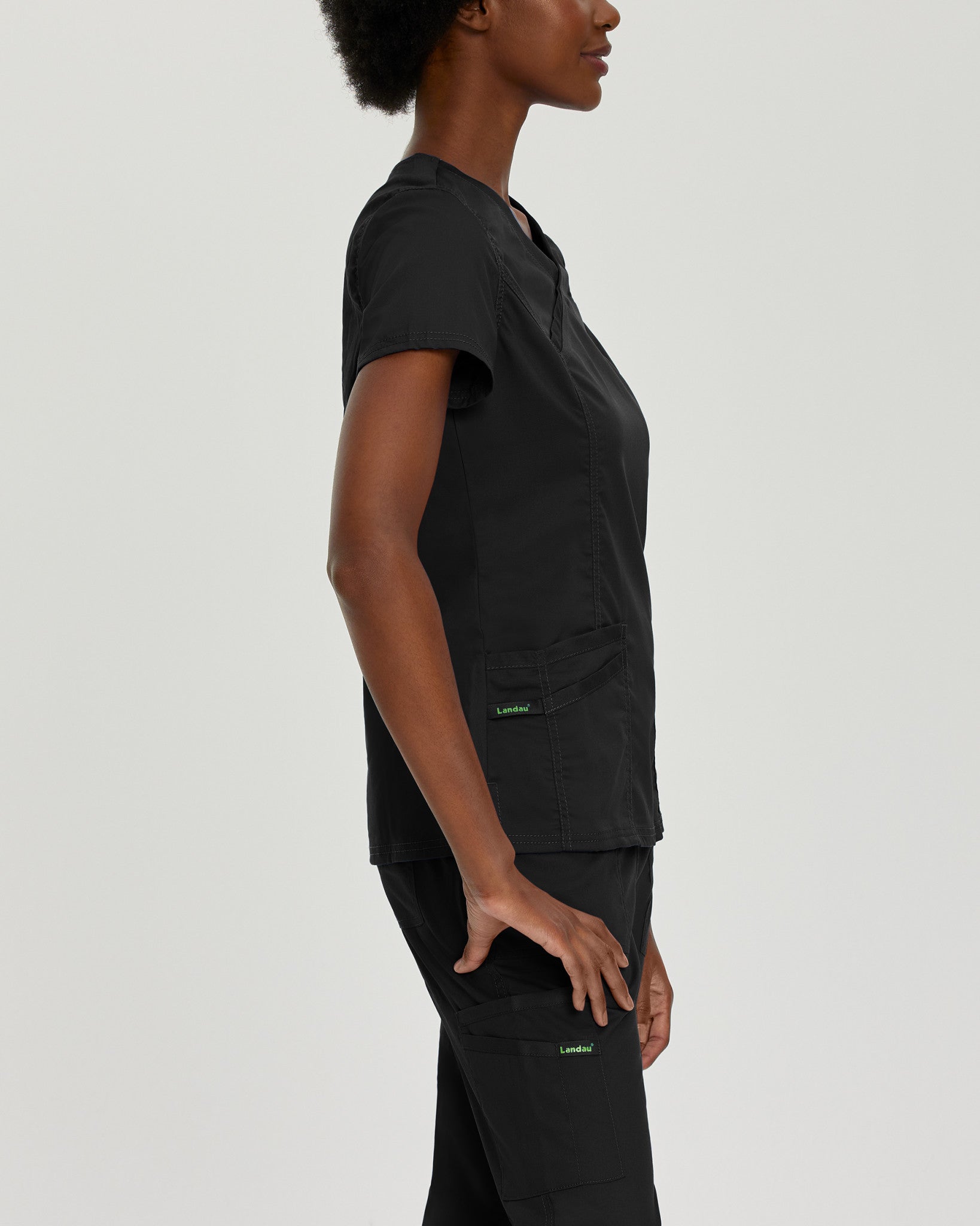 Place OrderWe design quality medical scrubs and medical uniforms with universal appeal. This mock wrap V-neck scrub top for women has side vents for ease of movement and princess seams and back darts for feminine shaping. Three pockets and accessory loops provide ample storage for your medical essentials. Our modern tailored fit is tapered to enhance your shape without constricting your movement, and our 2-way comfort stretch helps give you added flexibility required of your work wear. Whether it's Landau scrubs for men or scrubs for women, we're known for producing scrubs that work as hard as you do!