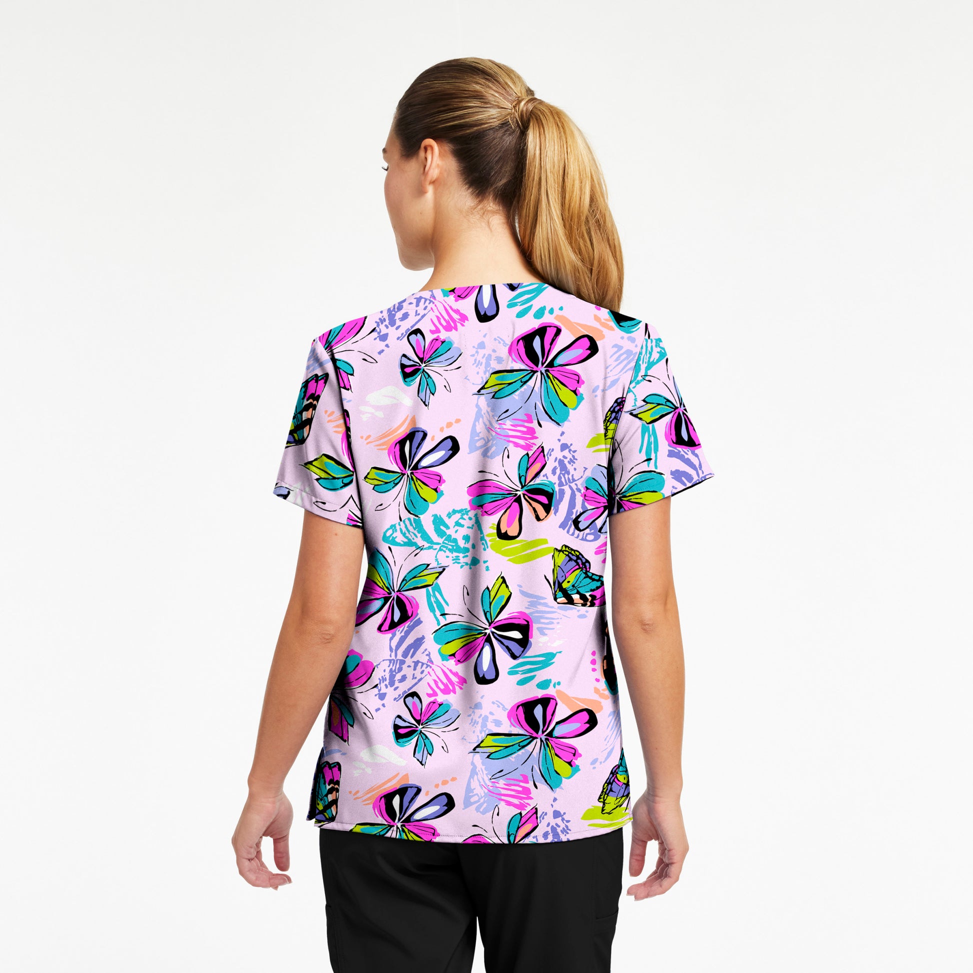 Bring comfort, style, and a touch of fun to your shift with this women’s 3-pocket V-neck scrub top. Crafted from breathable, two-way stretch fabric with a silky-soft feel, it moves with you all day long. Side vents and a contemporary slim fit contour to your shape for ease of movement and a flattering silhouette. Part of White Cross’s playful printed scrubs collection, these tops combine vibrant designs with functional stretch fabrics and are perfect for adding a little cheer to every shift.