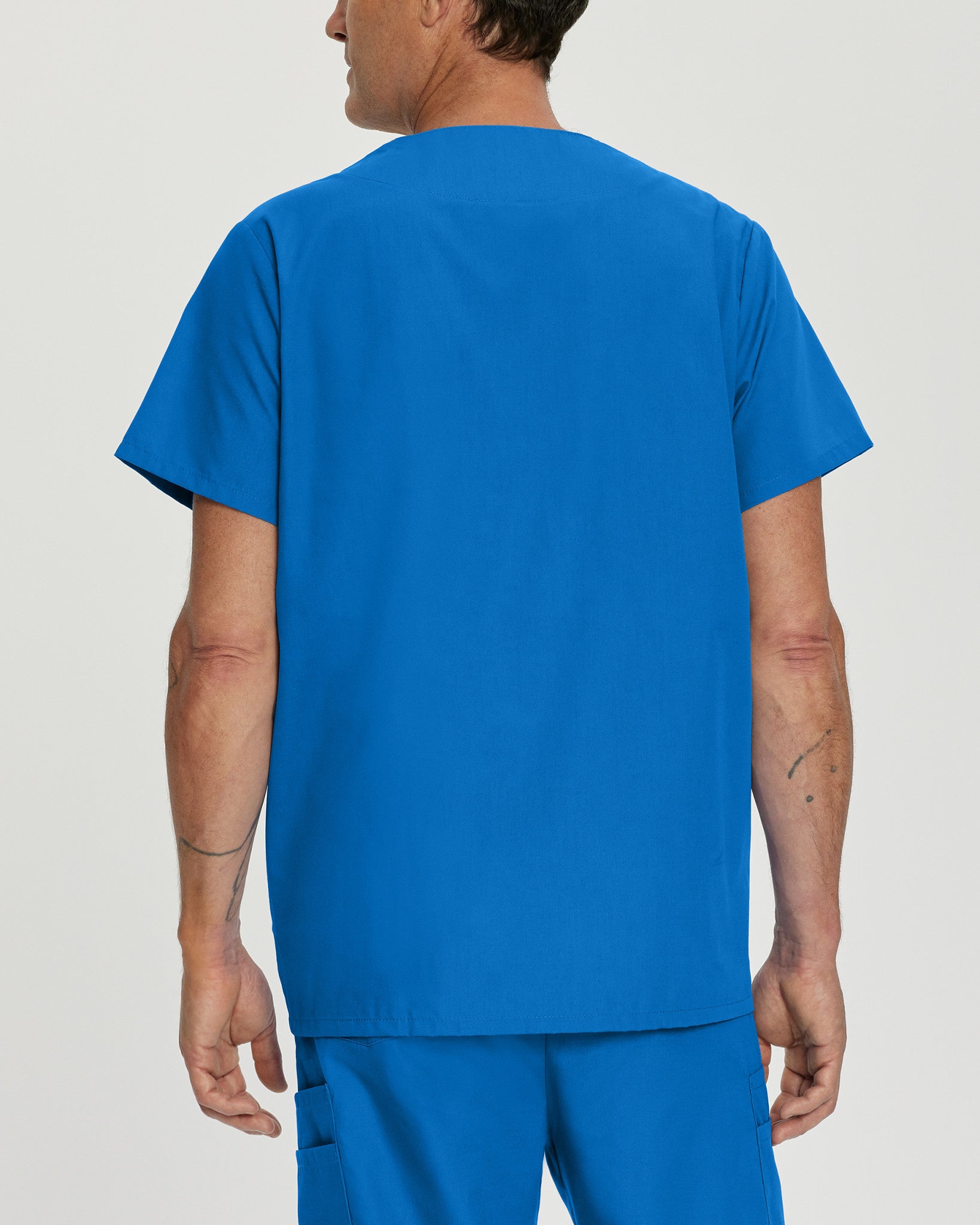 If this scrub top had more storage, we'd have to call it a garage! This five-pocket top is an easy wear V-neck pullover with one breast pocket, two lower layered pockets on the left and a single pocket with an interior cell phone division on the right. A locker loop makes this scrub top easy to hang up after a long shift. This Landau medical uniform top is so durable, it's approved for commercial laundry and are made with our classic generous fit for able ease of movement.