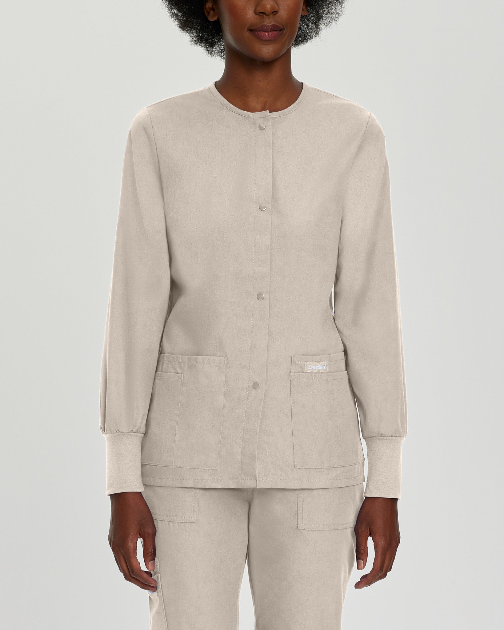 We design quality medical scrubs and medical uniforms with universal appeal. Comfortable and functional, this fabric scrub jacket for women features a movement-friendly fit and snap-front silhouette made for effortless ensemble changes. Four spacious pockets including one cell phone pocket and built-in pencil/instrument divisions, ensure your medical essentials are always within easy reach. Whether it's Landau scrubs for men or scrubs for women, we're known for producing scrubs that work as hard as you do!