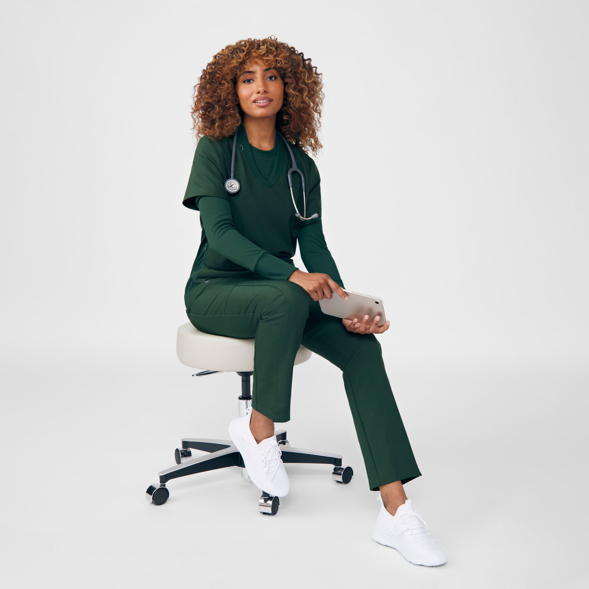 Place OrderThese women's mid-rise straight-leg scrub pants feature a soft rib-knit waistband with a convertible drawstring that can be tied inside or outside the waist, giving you the ability to adjust your look as you see fit. Our modern tailored fit flatters your shape, while our moisture-wicking super stretch fabric provides the comfort and flexibility your work requires throughout the day. Seven pockets, including hidden hip pockets and a secure zip cargo pocket keep your essentials within easy reach.