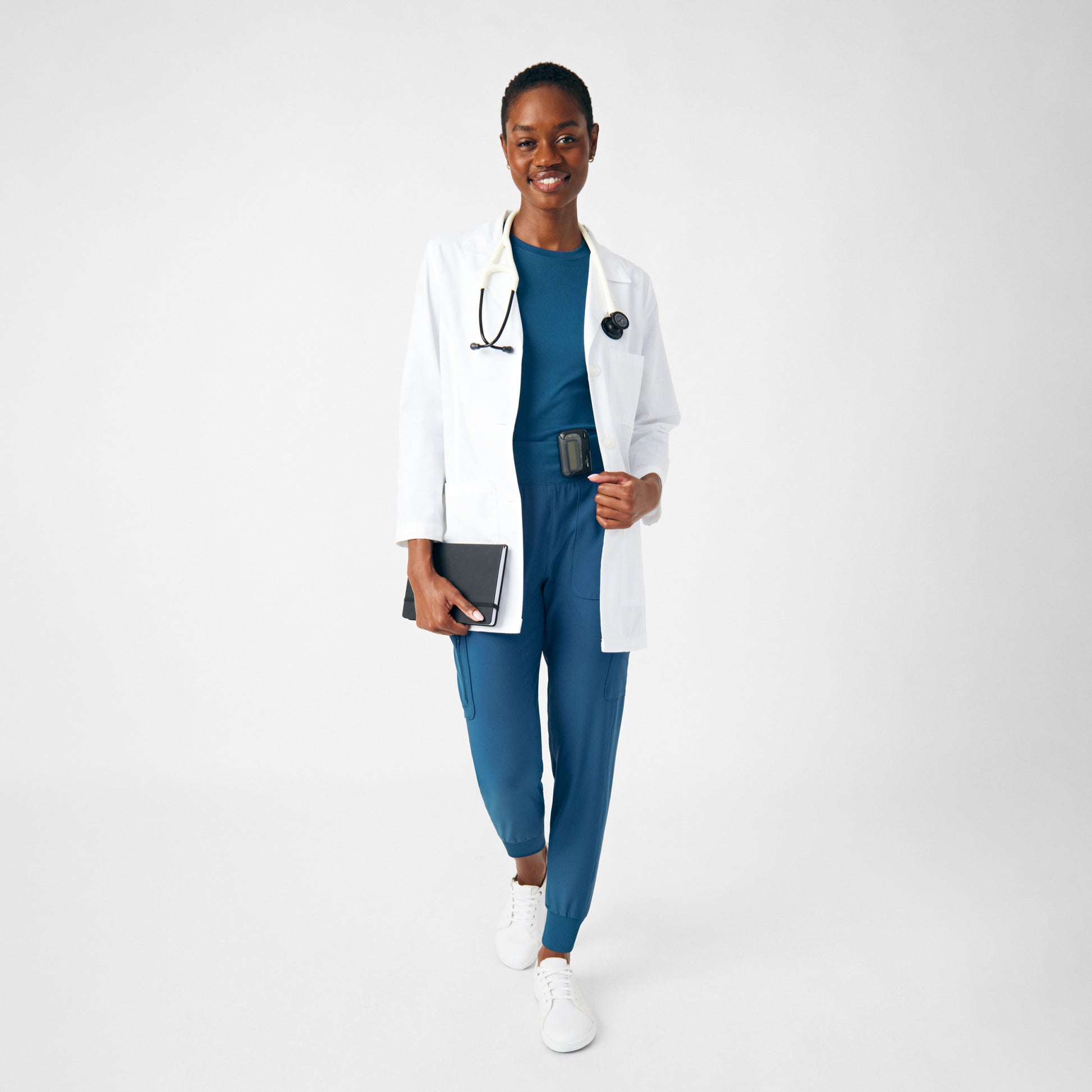 Place OrderThese women's mid-rise jogger scrub pants feature a stretchy rib-knit waistband with an internal drawstring for a clean look with an adjustable fit. Soft, comfortable rib-knit leg cuffs and hidden rib-knit panels down the inseam of the pant legs allows for ample freedom of movement. Our modern tailored fit flatters your shape, while our moisture-wicking super stretch fabric provides the comfort and flexibility your work requires throughout the day. Seven pockets, including a secure zip cargo pocket keep your essentials within easy reach.