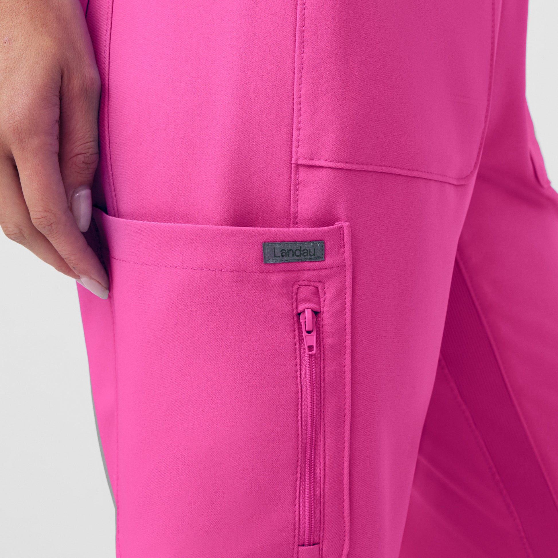 These women's mid-rise jogger scrub pants feature a stretchy rib-knit waistband with an internal drawstring for a clean look with an adjustable fit. Soft, comfortable rib-knit leg cuffs and hidden rib-knit panels down the inseam of the pant legs allows for ample freedom of movement. Our modern tailored fit flatters your shape, while our moisture-wicking super stretch fabric provides the comfort and flexibility your work requires throughout the day. Seven pockets, including a secure zip cargo pocket keep your essentials within easy reach.