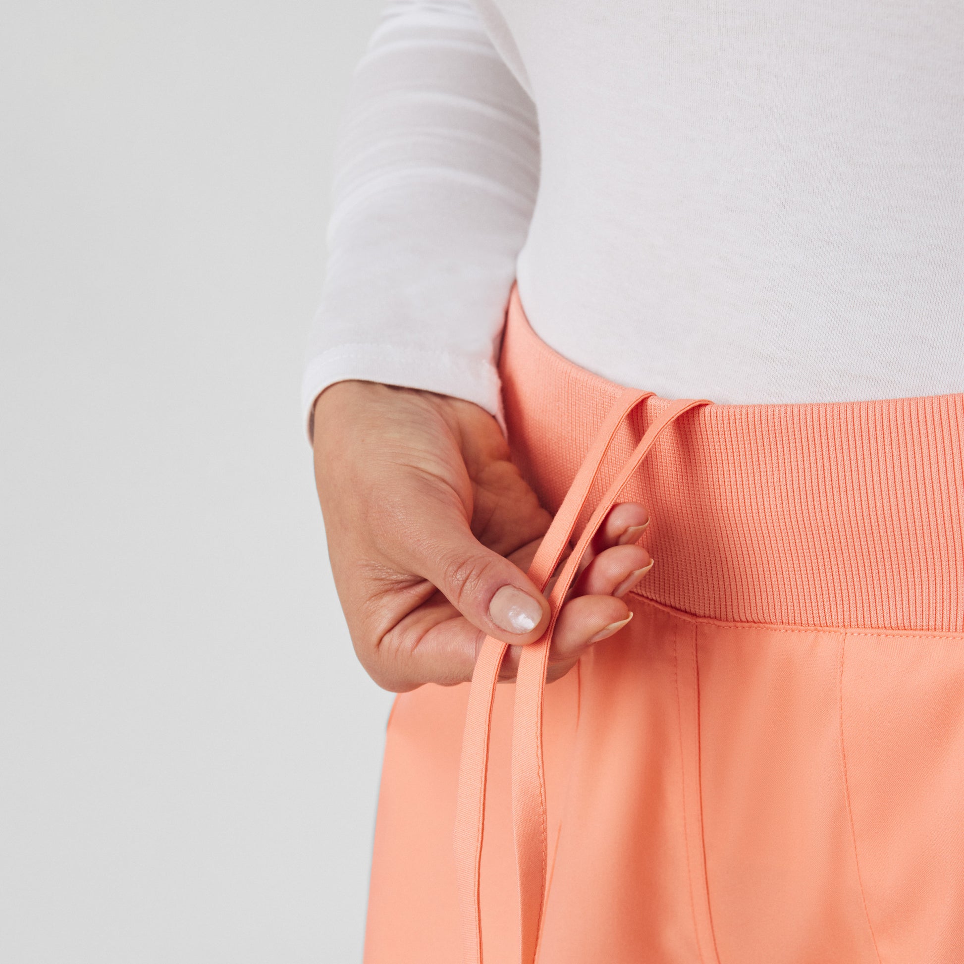 • Mid-rise rib-knit elastic waist with an internal drawstring for a clean look with a secure fit
