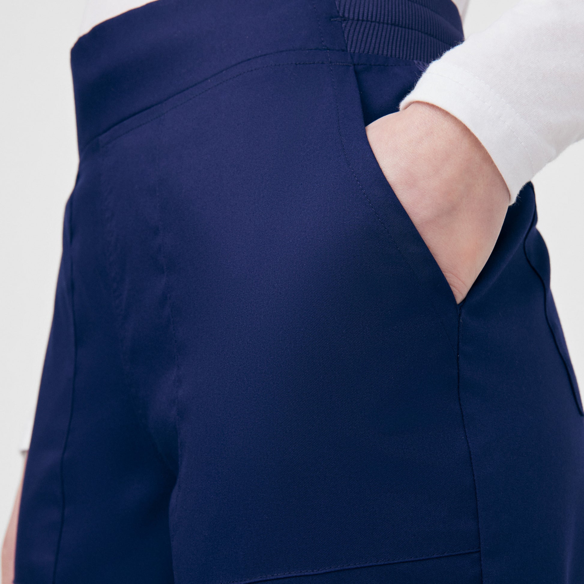 • Mid-rise elastic-back waist with a flat front and internal drawstring for a clean look with a secure fit