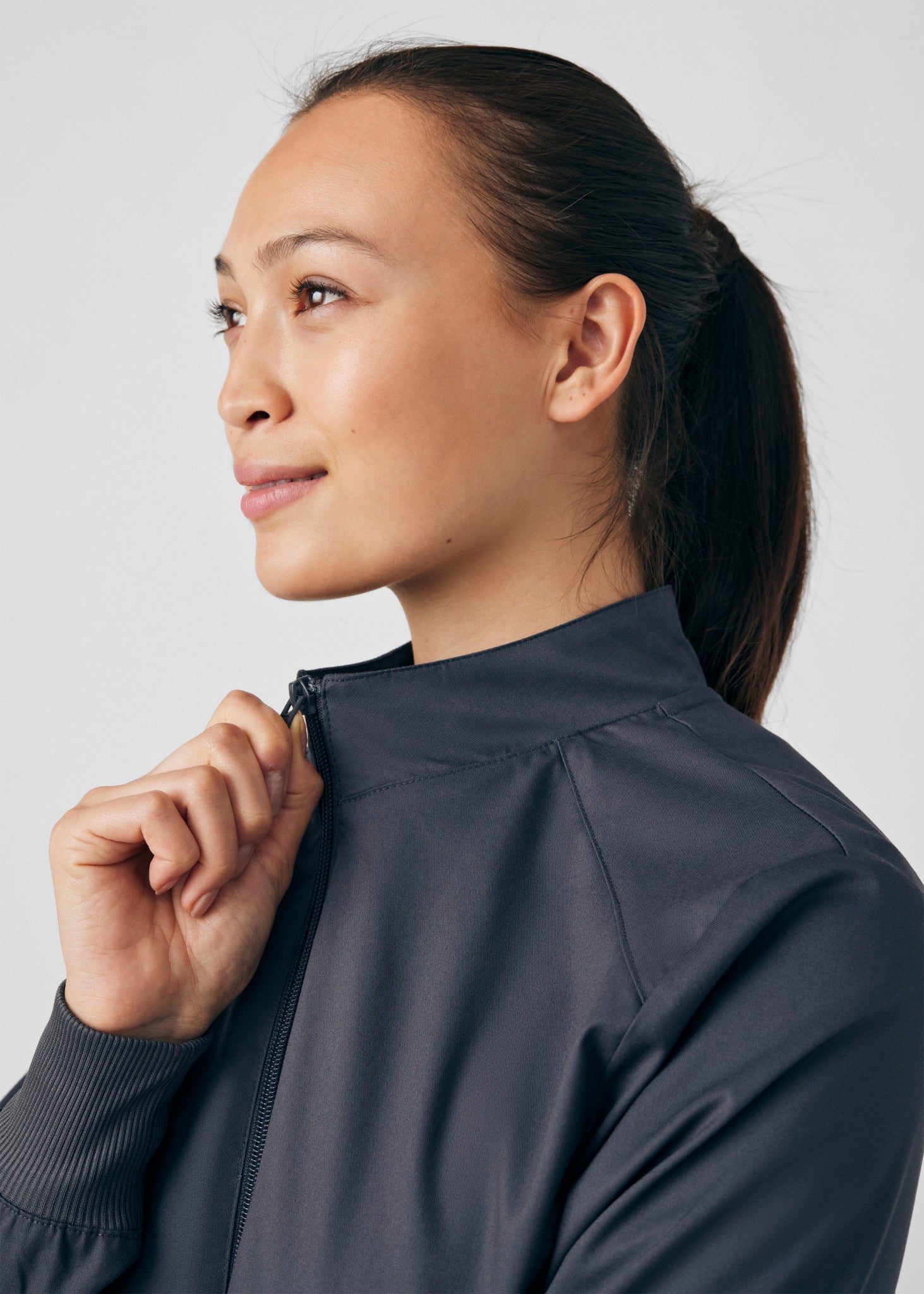 Stay warm and comfortable with this sporty, Modern Fit jacket! With front and back princess seams, rib knit cuff sleeves, mock neck collar, ID badge loop, 2 large pockets and 1 Small pocket with a hidden elastic loop to keep your accessories organized. This jacket can go from home to office any day.