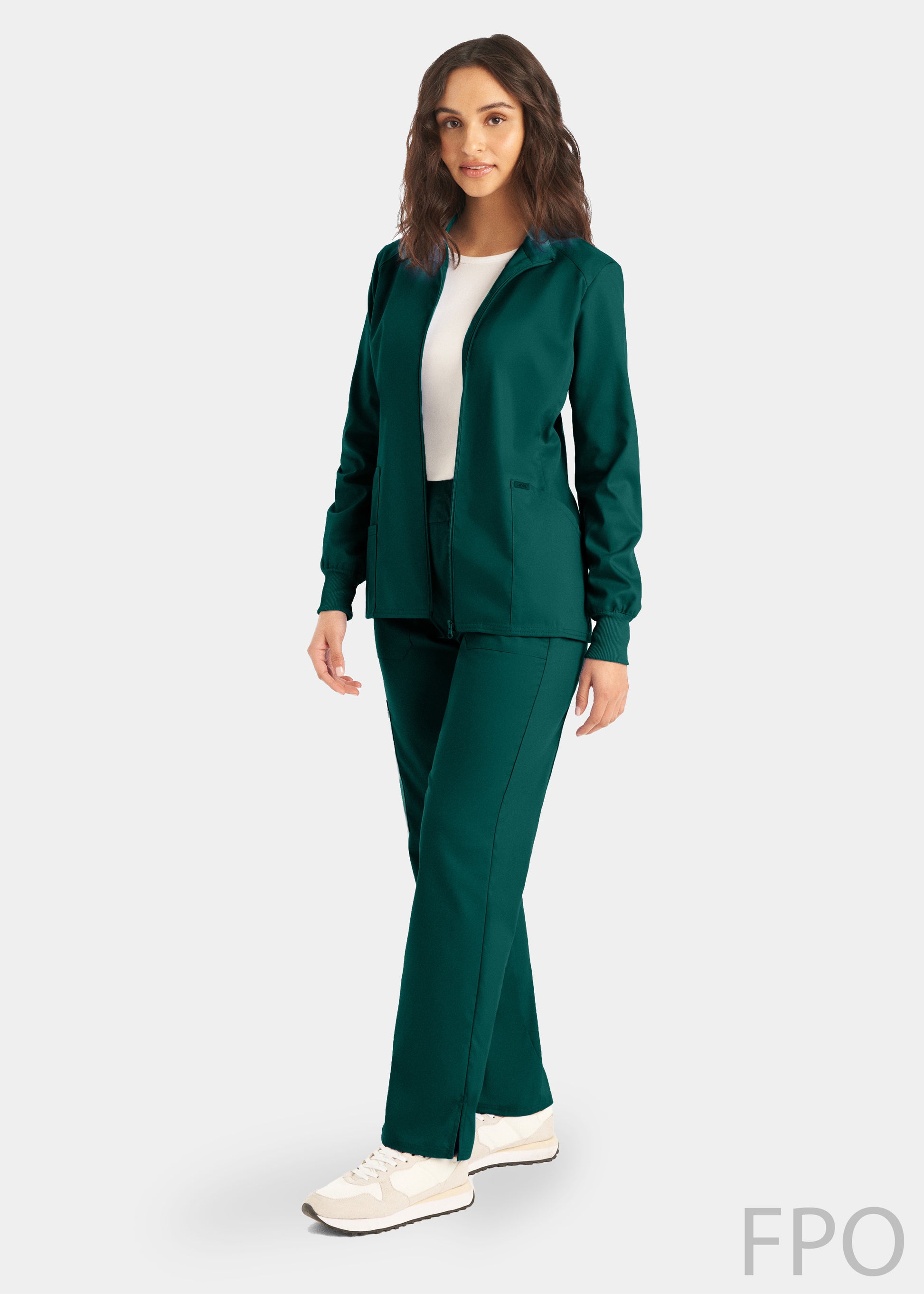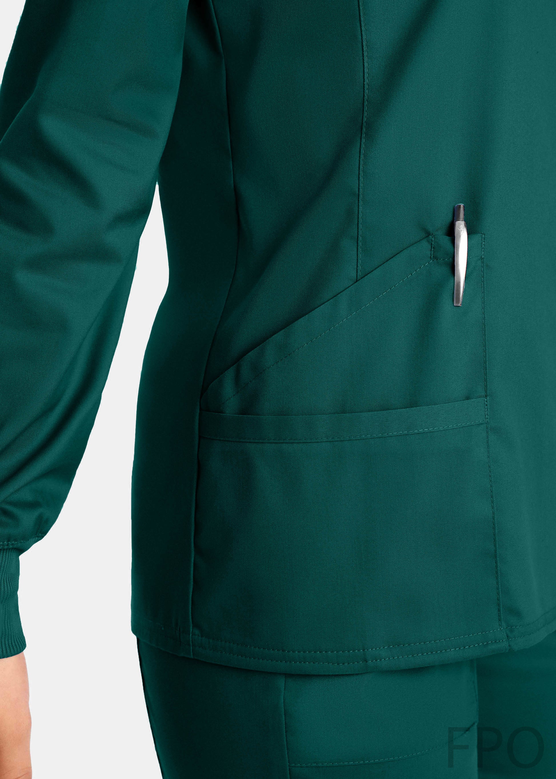 Place OrderStay warm and comfortable with this sporty, Modern Fit jacket! With front and back princess seams, rib knit cuff sleeves, mock neck collar, ID badge loop, 2 large pockets and 1 Small pocket with a hidden elastic loop to keep your accessories organized. This jacket can go from home to office any day.