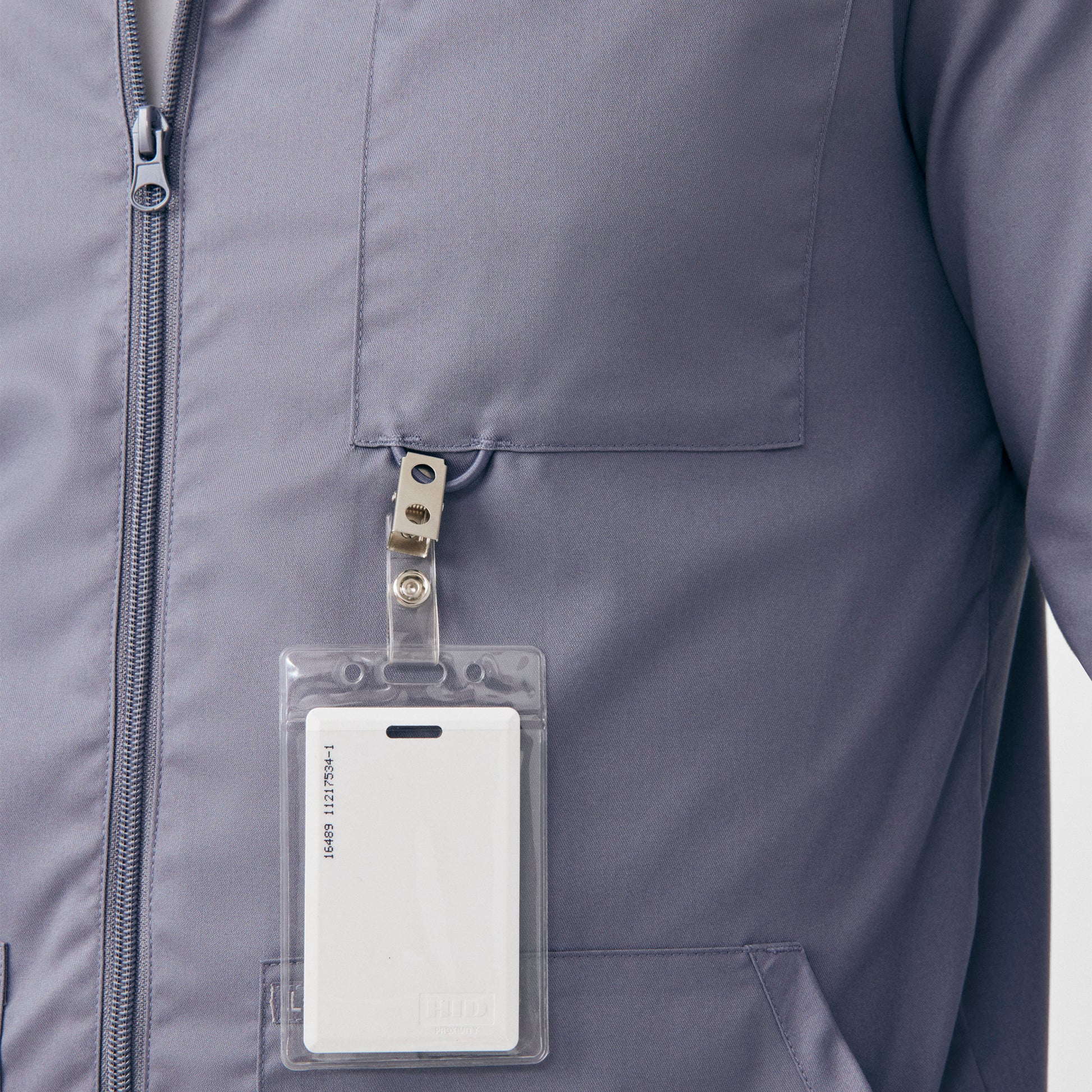 This Men's Fit, front zip jacket is comfortable and keeps you warm in the office. It features rib knit cuffs, ample amount of space for accessories, with 1 chest pocket that comes with a loop for your ID badge, 2 Large pockets and a bonus small pocket that contains an elastic that will hold your stationary items making this an essential item to your wardrobe.