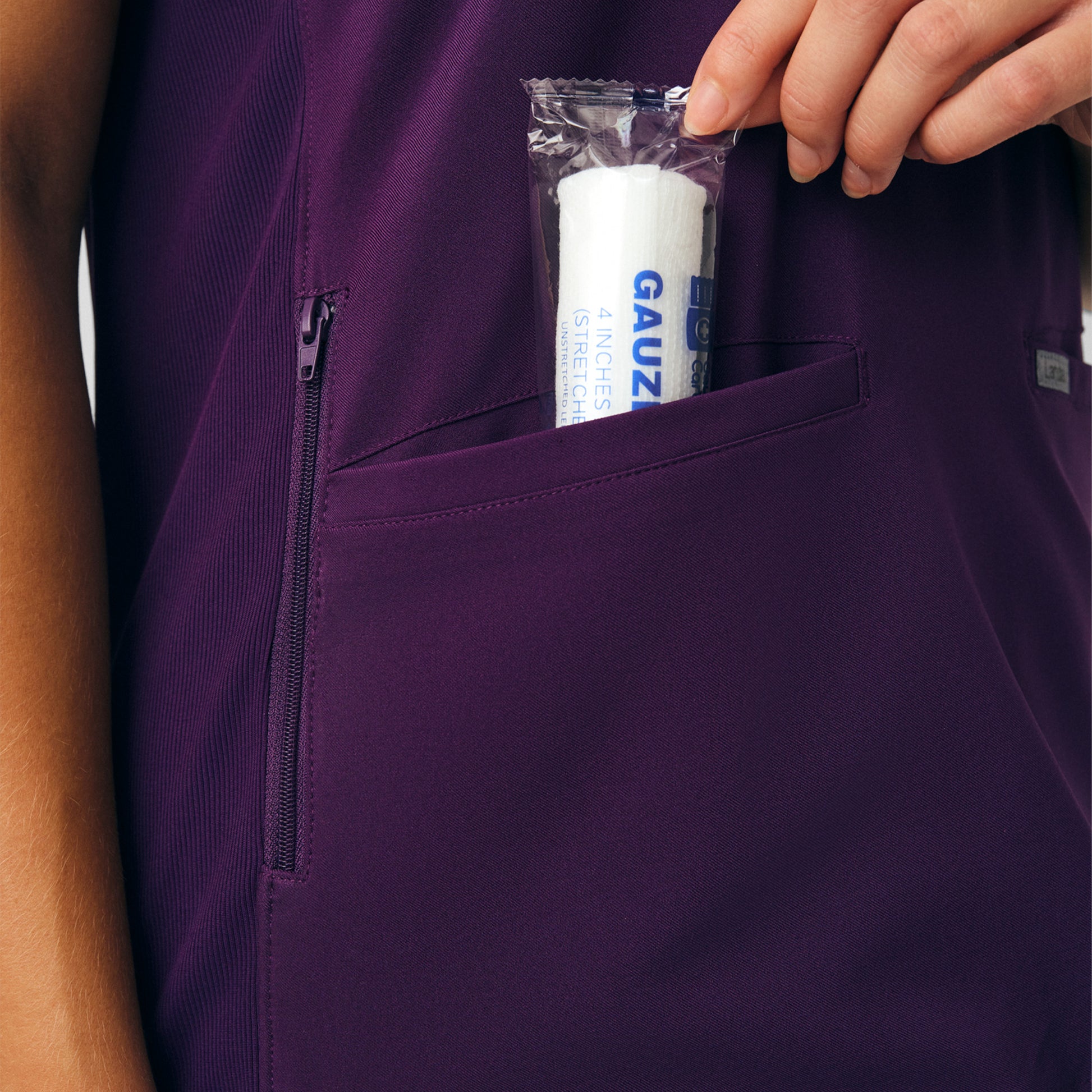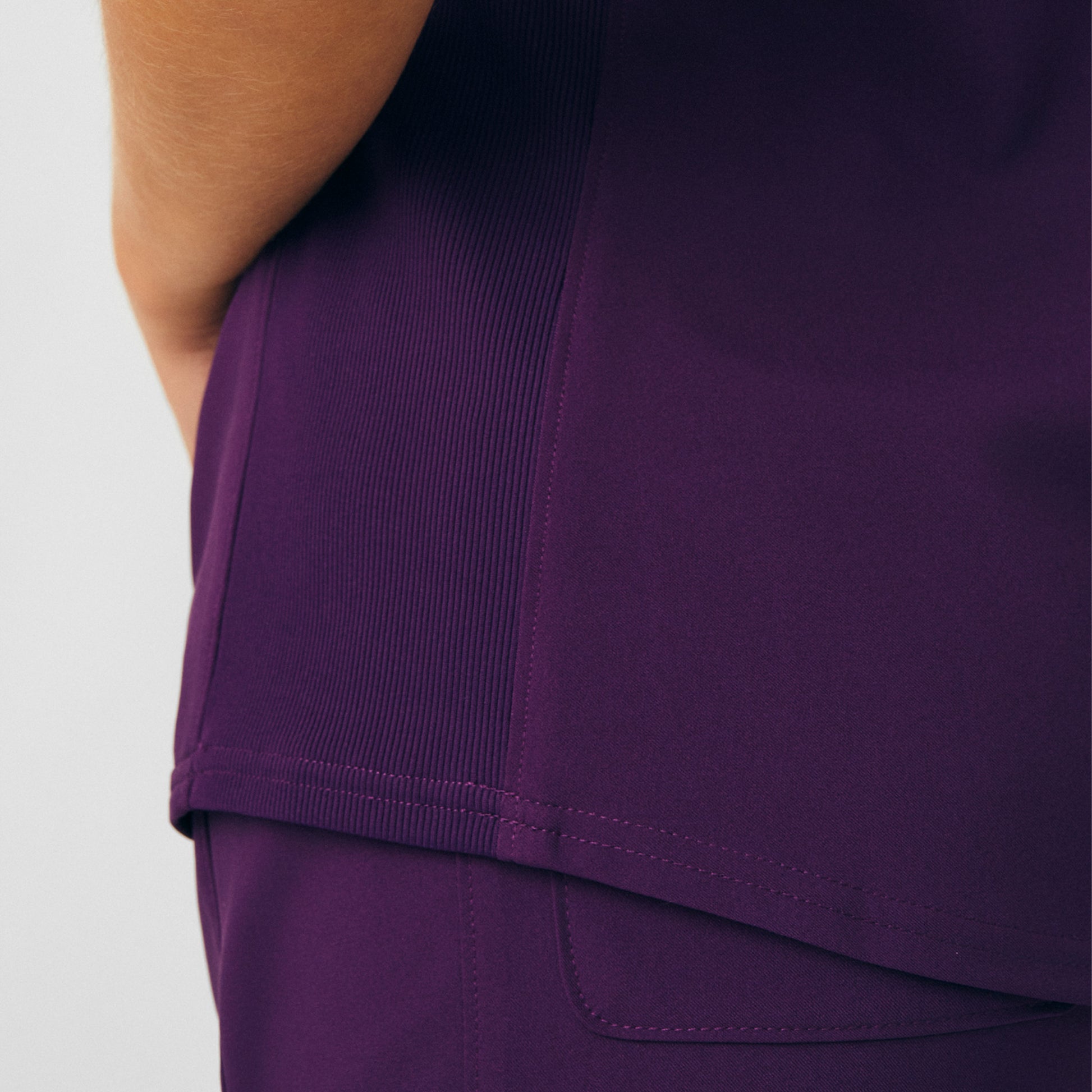 You will fall in love with this women's scrub top with its soft rib-knit side panels and neckband, which allow for comfort and ease of movement. Two front welt pockets and a badge loop provide plenty of storage and an on-seam zipper pocket keeps your items secure. Our modern tailored fit flatters your shape, while our moisture-wicking super stretch fabric provides the comfort and flexibility your work requires throughout the day.
