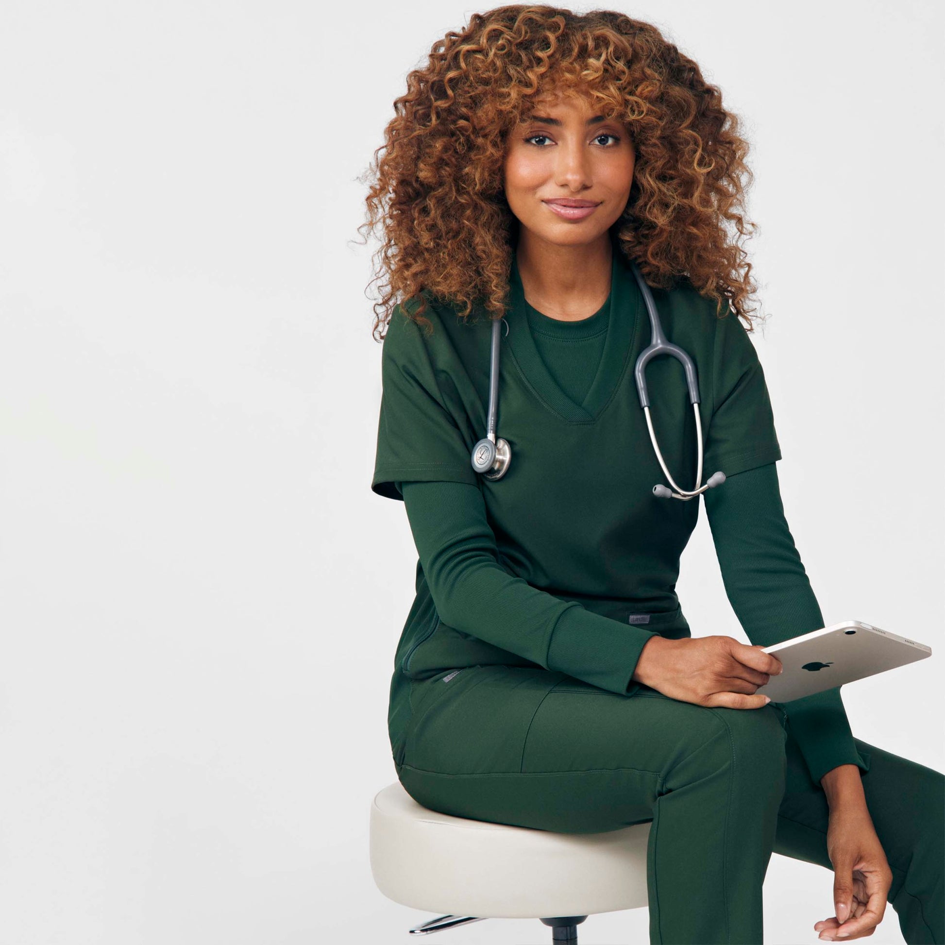 You will fall in love with this women's scrub top with its soft rib-knit side panels and neckband, which allow for comfort and ease of movement. Two front welt pockets and a badge loop provide plenty of storage and an on-seam zipper pocket keeps your items secure. Our modern tailored fit flatters your shape, while our moisture-wicking super stretch fabric provides the comfort and flexibility your work requires throughout the day.