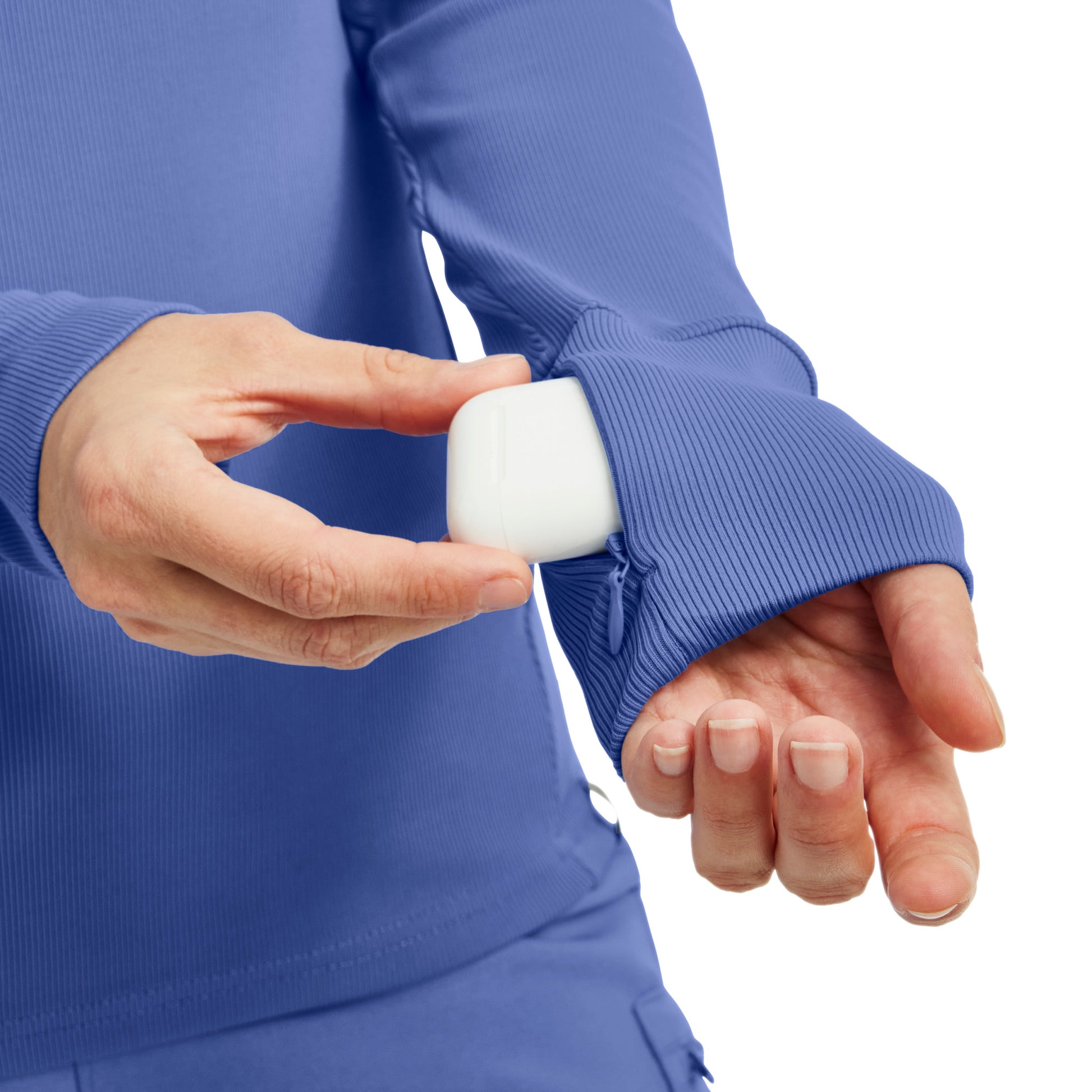 This contemporary layering underscrub tee is made with figure flattering rib knit with wrap-around side seams and a zipper pocket at the left cuff to keep your personal essentials safe. This long-sleeve tee is the perfect way to add warmth to your wardrobe when you're working in cold environments.