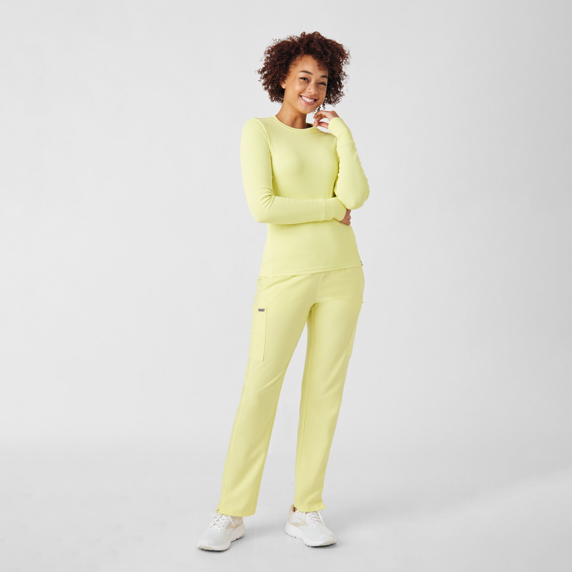 This contemporary layering underscrub tee is made with figure flattering rib knit with wrap-around side seams and a zipper pocket at the left cuff to keep your personal essentials safe. This long-sleeve tee is the perfect way to add warmth to your wardrobe when you're working in cold environments.