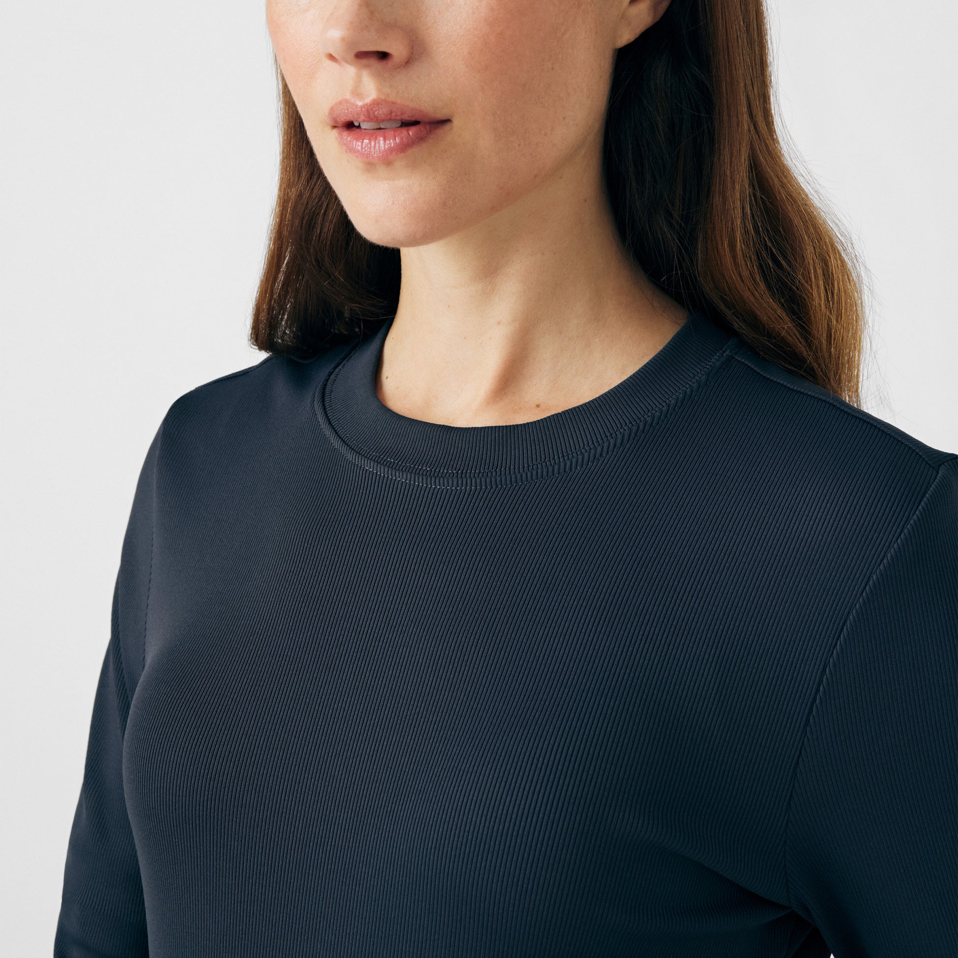 This contemporary layering underscrub tee is made with figure flattering rib knit with wrap-around side seams and a zipper pocket at the left cuff to keep your personal essentials safe. This long-sleeve tee is the perfect way to add warmth to your wardrobe when you're working in cold environments.