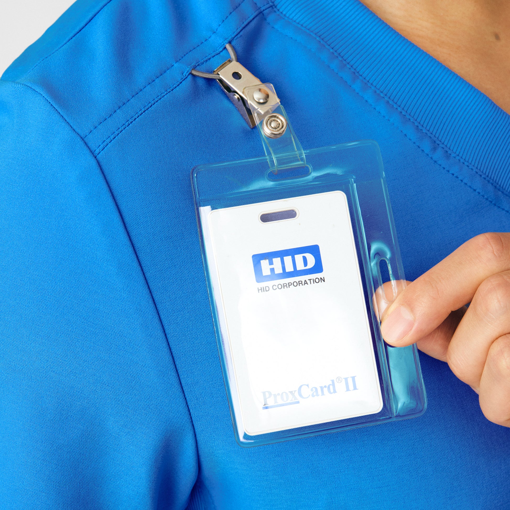 This Men's Fit, V-neck top has great features like a rib knit neckband and rib knit side panels that will give you a comfortable and sleek fit. With 1 zipper pocket to keep personal items secured, 1 separate patch chest pocket to store additional items and a ID badge loop.