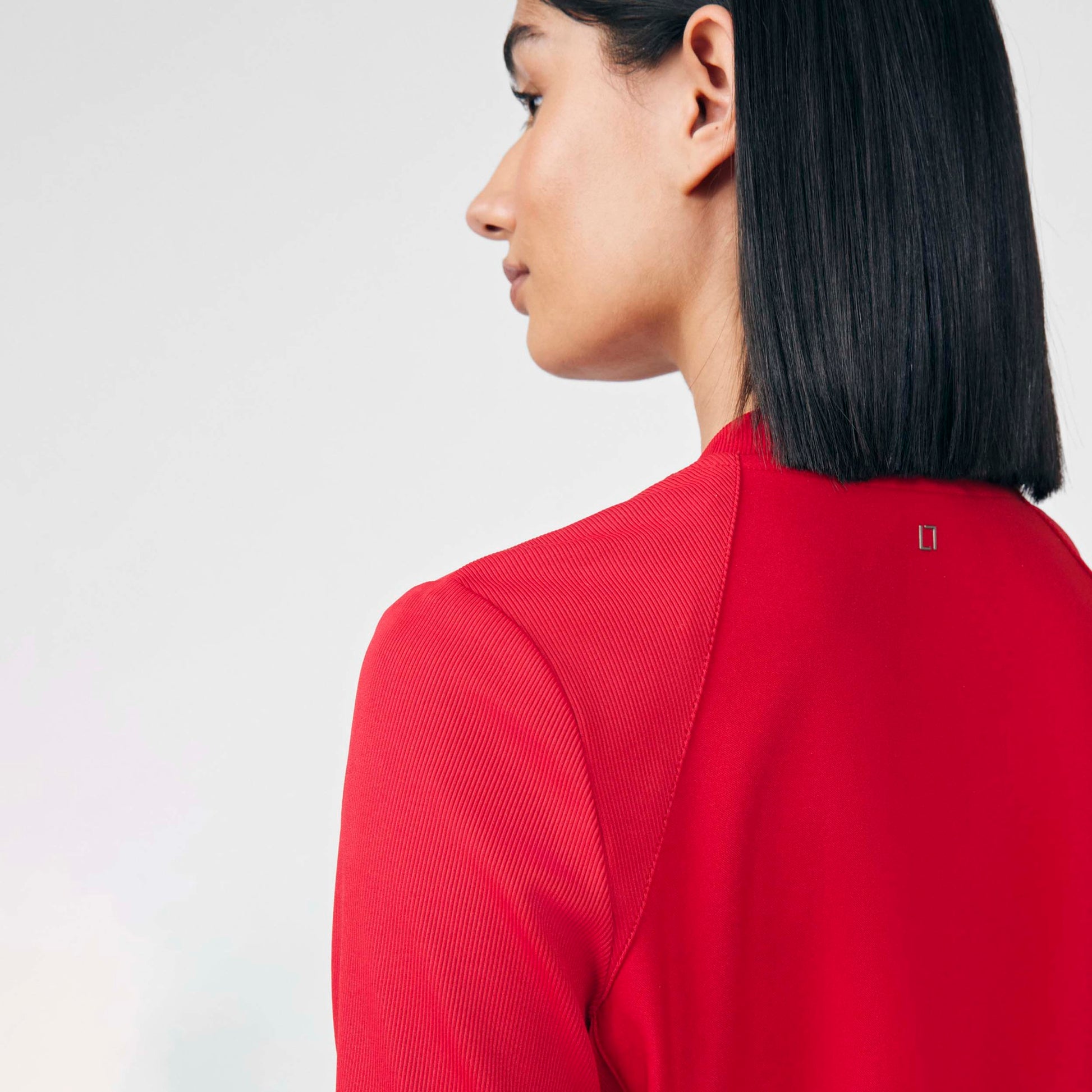 Perfect for layering or rocking solo, this versatile top has a sleek, athletic-inspired design that strikes the perfect balance between comfort and performance. The V-neckline and raglan sleeves offer a flattering, modern fit without sacrificing freedom of movement. Two front welt pockets provide convenient storage for your essentials, and the long sleeves with soft knit cuffs deliver a secure, comfortable fit.