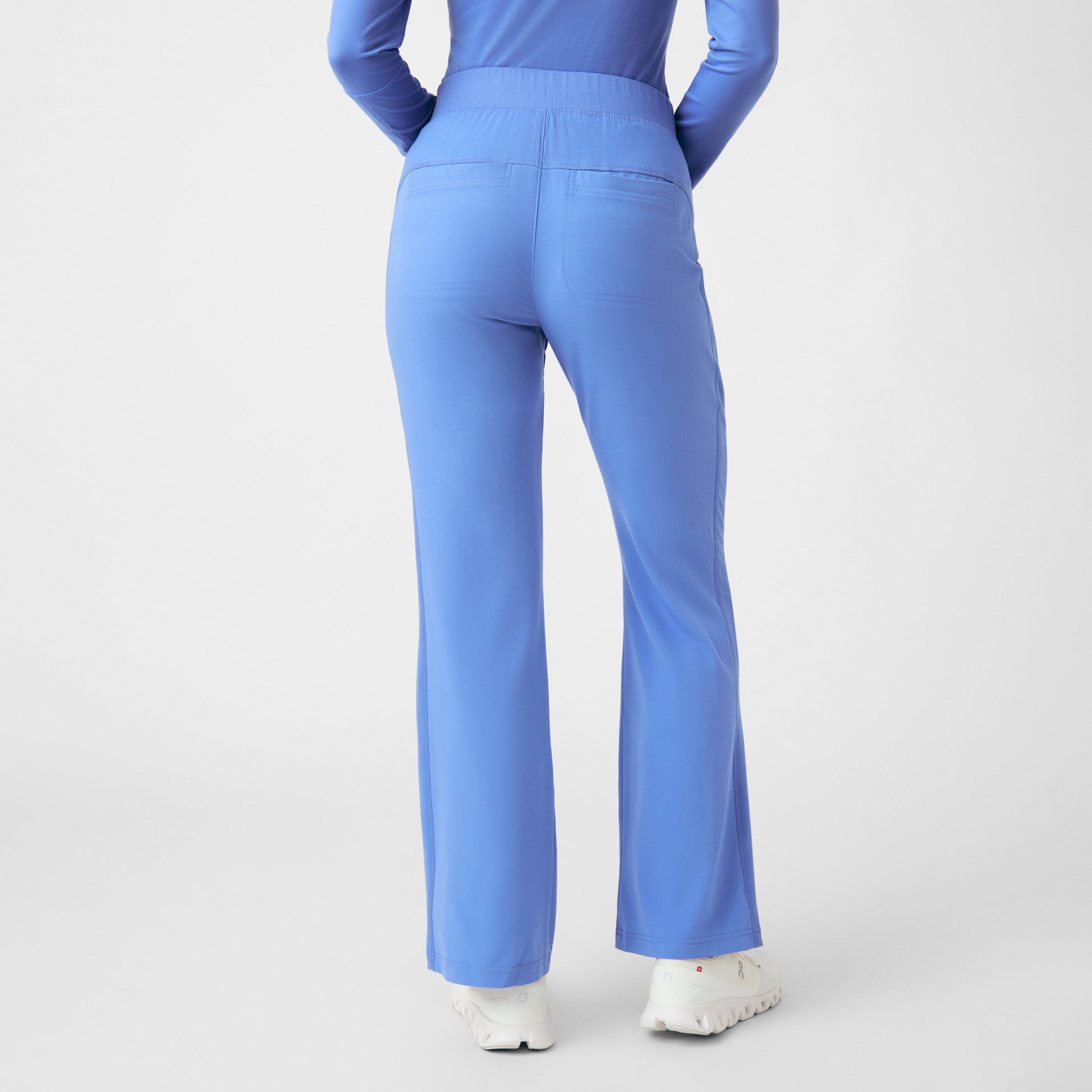 This Modern Fit, mid-rise pant features a trendy bootcut leg and a stylish knit yoke and side panels for ultimate comfort and mobility. 2 front zipper pockets, 1 vertical cell phone pocket, and 2 back pockets help keep your items secure. A perfectly sleek, non pinching knit elastic waistband with an adjustable internal drawstring for extra security.