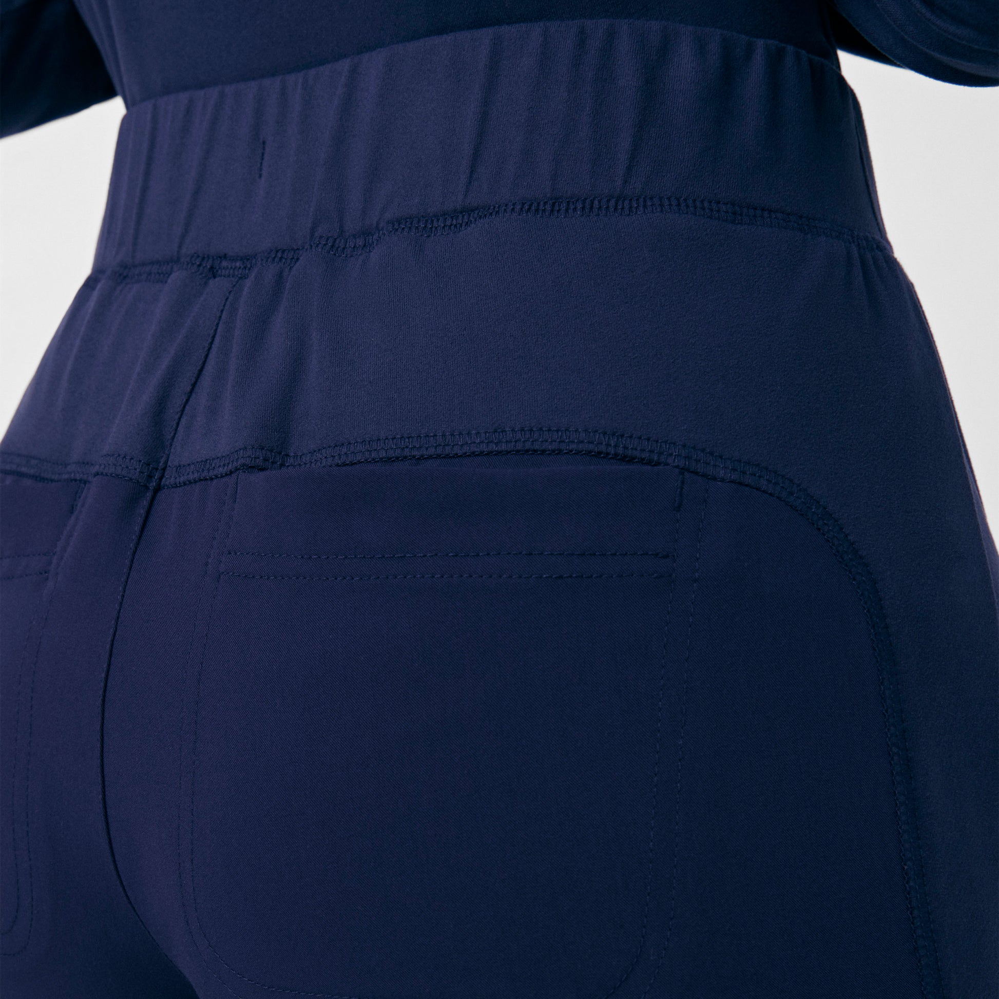 • Mid-rise rib-knit elastic waist with an internal drawstring for a clean look with a secure fit