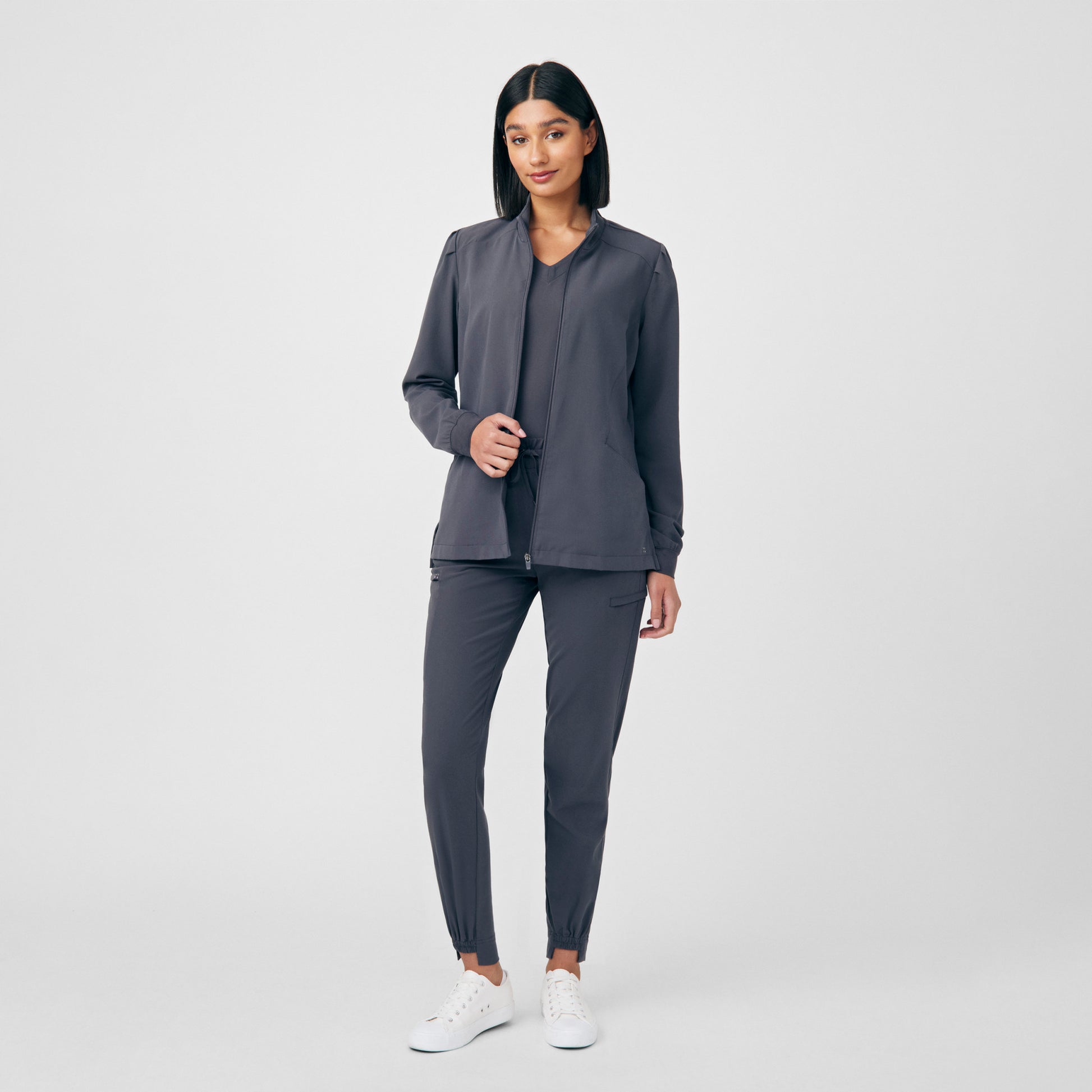 Modern Fit, mid-rise jogger with fashionable hi-low cuffs and added side panels for a contoured flattering fit this jogger is sure to be a hit. With a total of 6 pockets, this jogger will hold anything you may need to carry. Features a cozy knit waistband for comfort and a drawstring for adjustability.