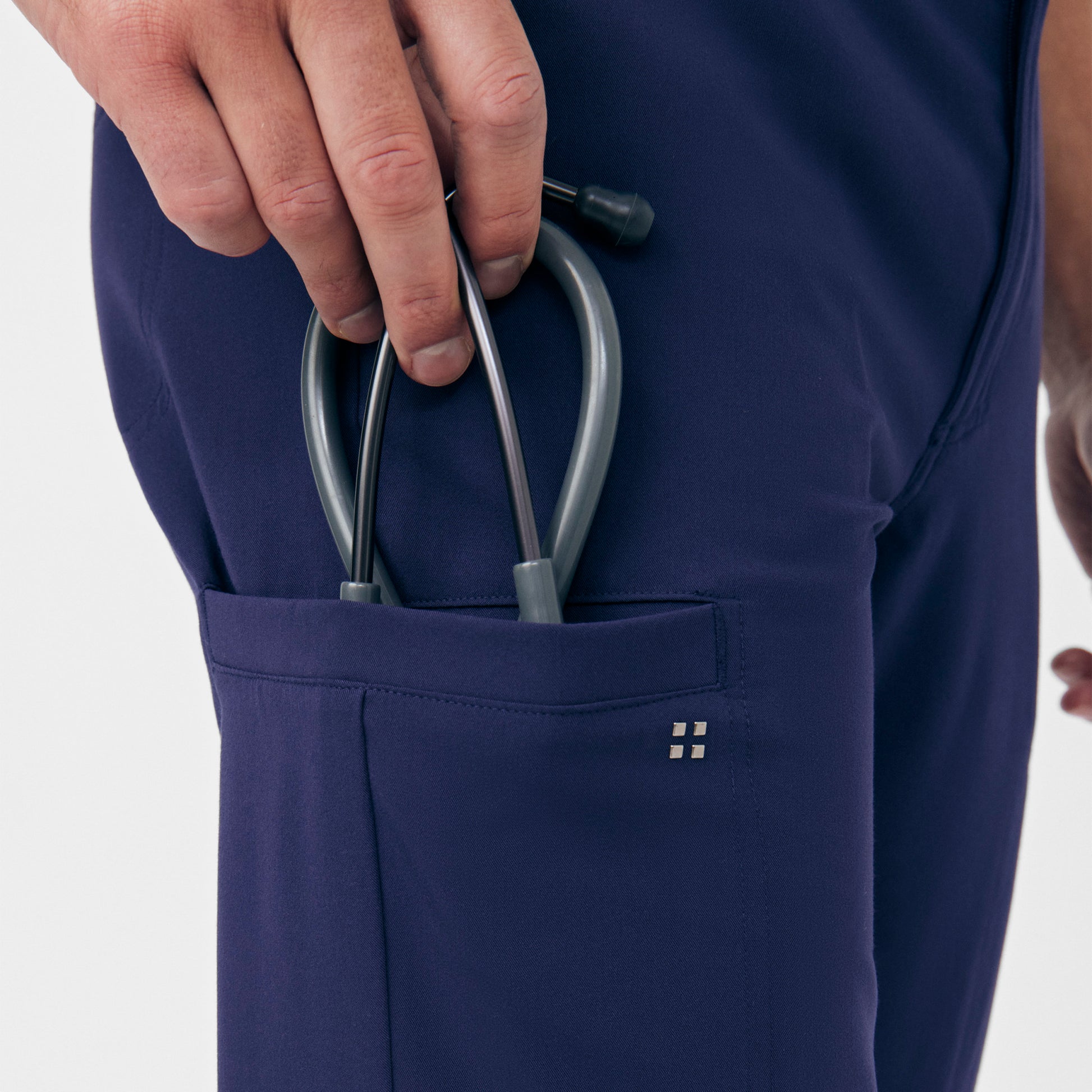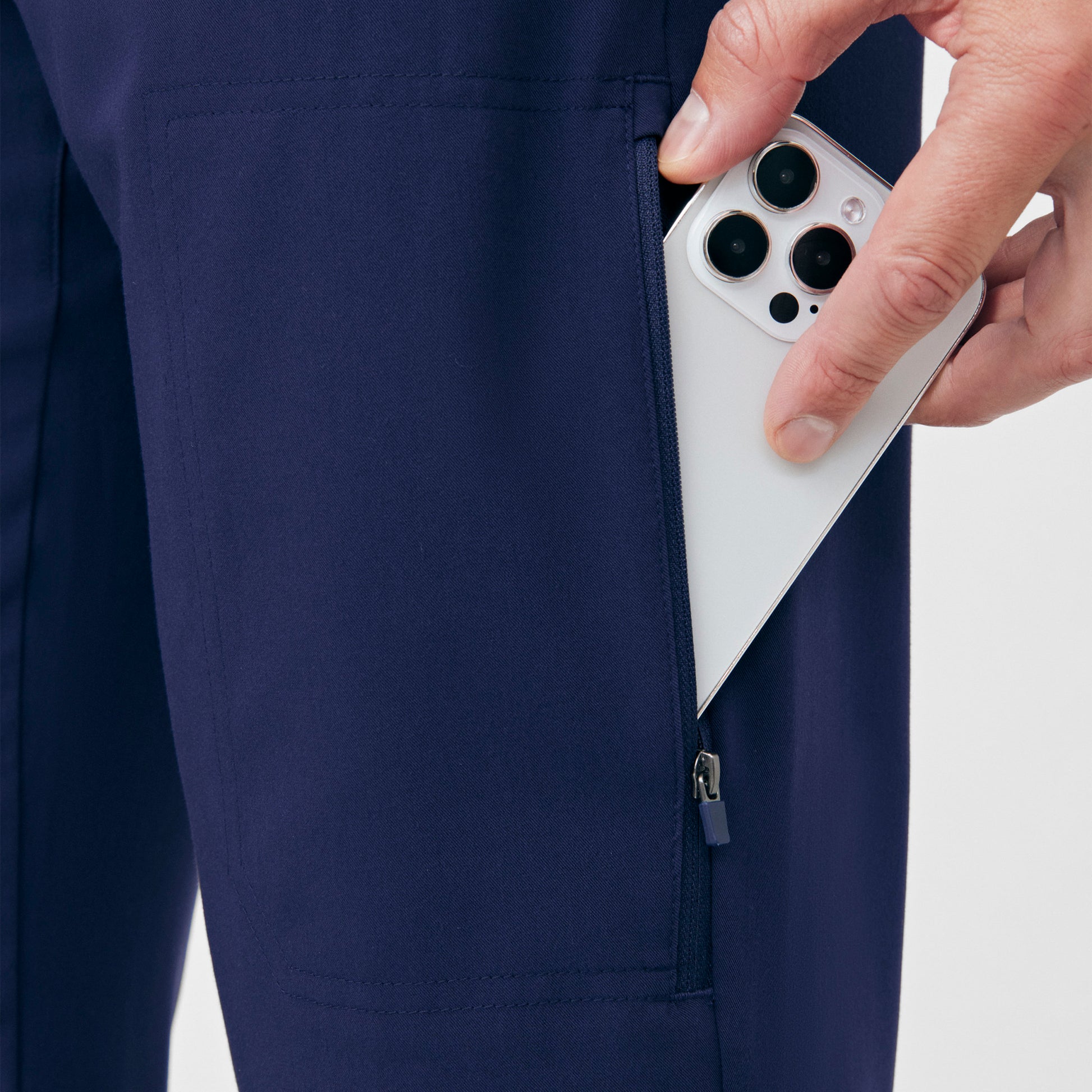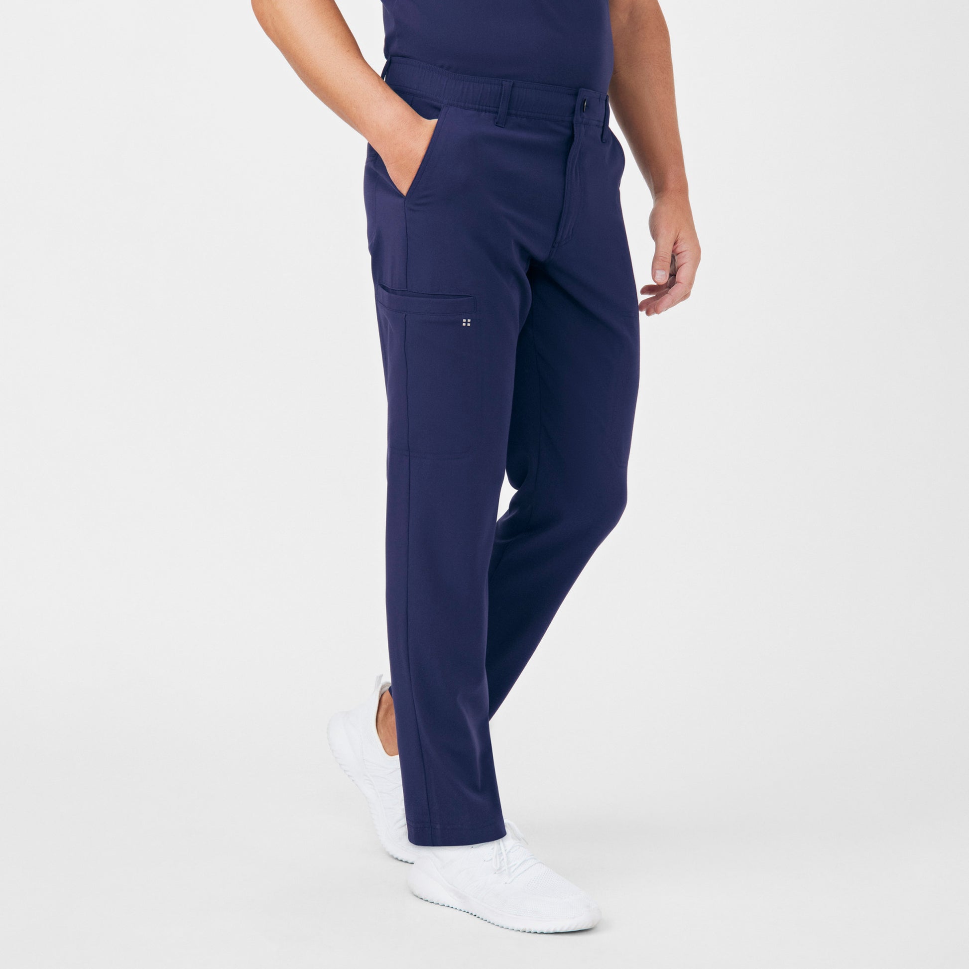 This Men's Fit tapered leg cargo pant with a button zip fly will become your everyday work pant. This trouser-inspired pant has an elastic waist with an inner drawcord and belt loops for extra security and adjustability. Features 2 front pockets, 1 money clip pocket, 1 welt cargo pocket, 1 verticle zipper cargo pocket and 2 back welt pockets with a snap closure to fit all your essential items. Added ergonomic gusset at the seat for additional comfort.