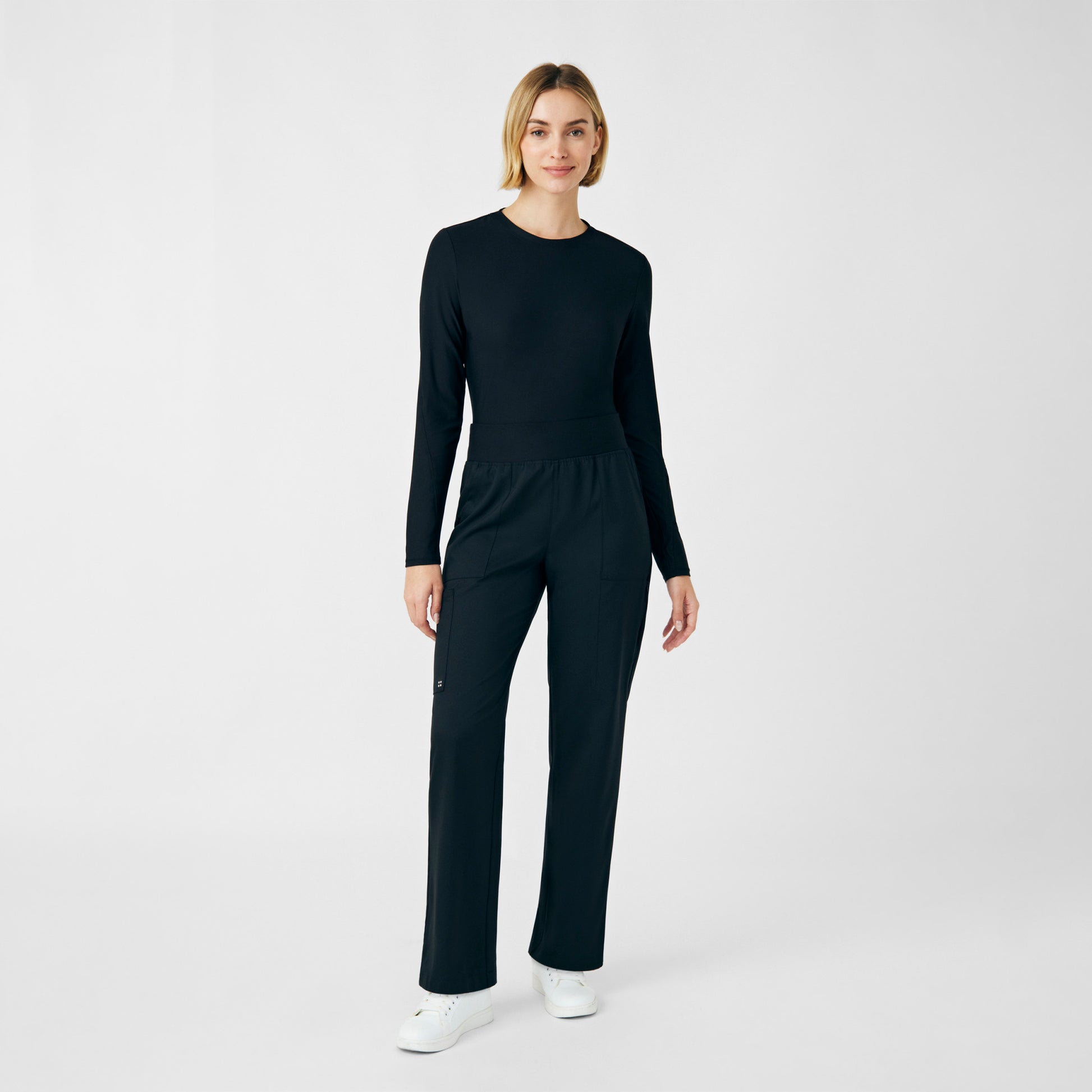 Place OrderDesigned for active professionals, these women's pants showcase a wide-leg silhouette that seamlessly blends style with functionality. The sporty design incorporates six pockets, including a convenient zipper cargo pocket. The waistband is thoughtfully crafted with a comfortable knit and an internal drawcord, ensuring both ease and functionality.