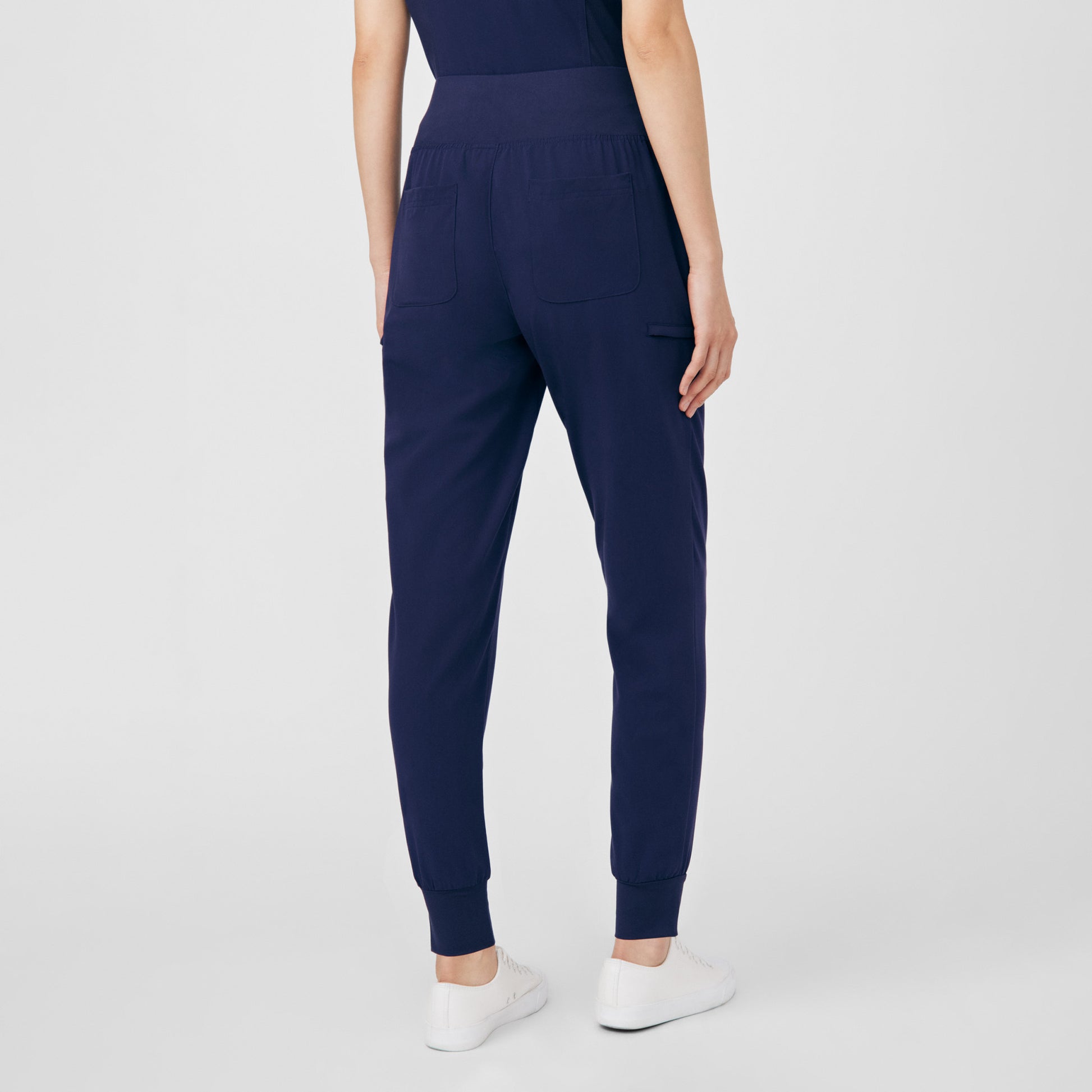 Modern Fit, High-Rise jogger with 6 pockets; 2 front pockets, 2 zipper cargo pockets and 2 back pockets. A cozy knit waistband for comfort and drawstring for adjustability. Knit cuffs complete the easy jogger silhouette.