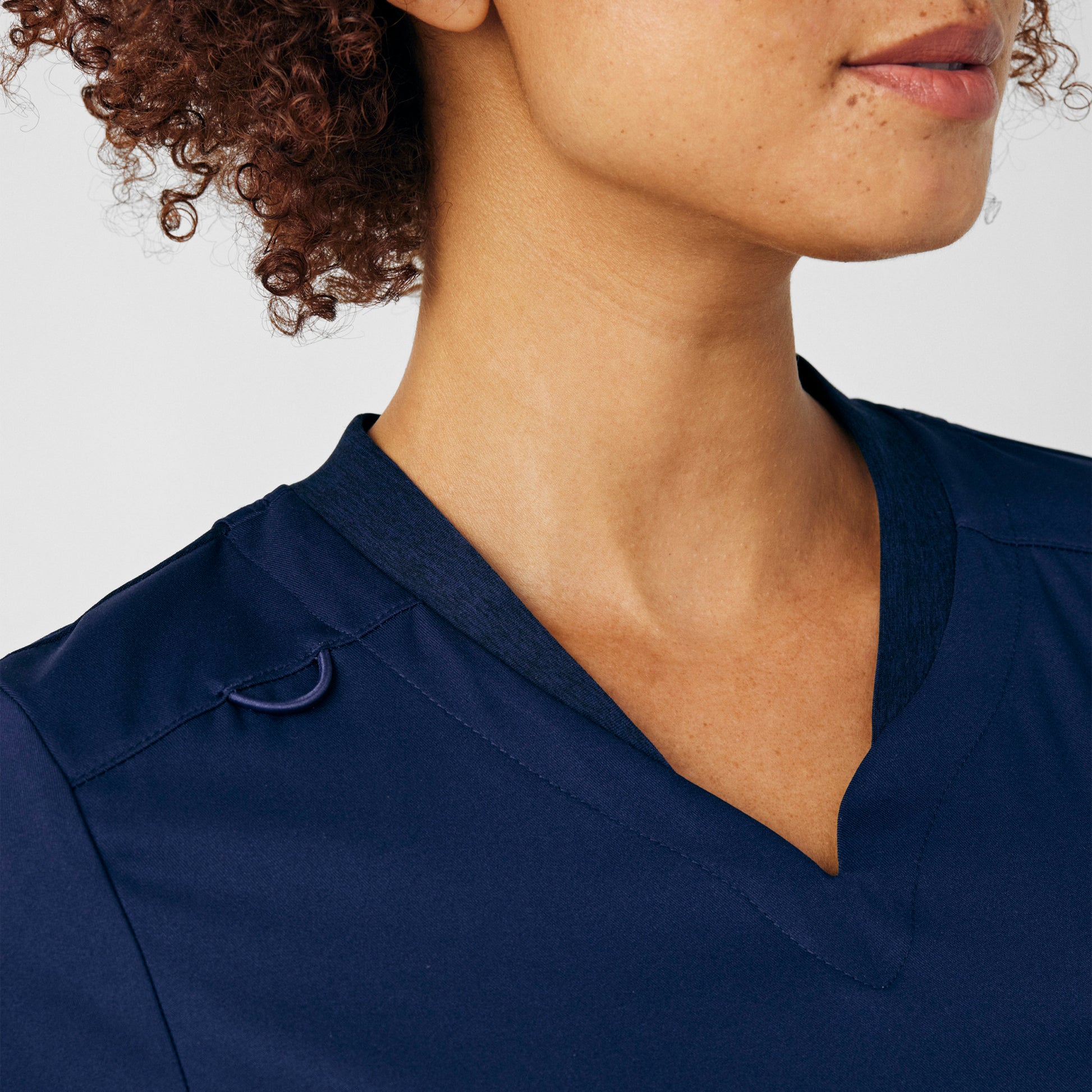 Place OrderThis V-neck top for women embodies a contemporary and adaptable style, featuring a knit collar and side panels that offer breathablity and freedom of movement. With a chest pocket and a side pocket, this top provides a practical tuck-in option for added convenience.