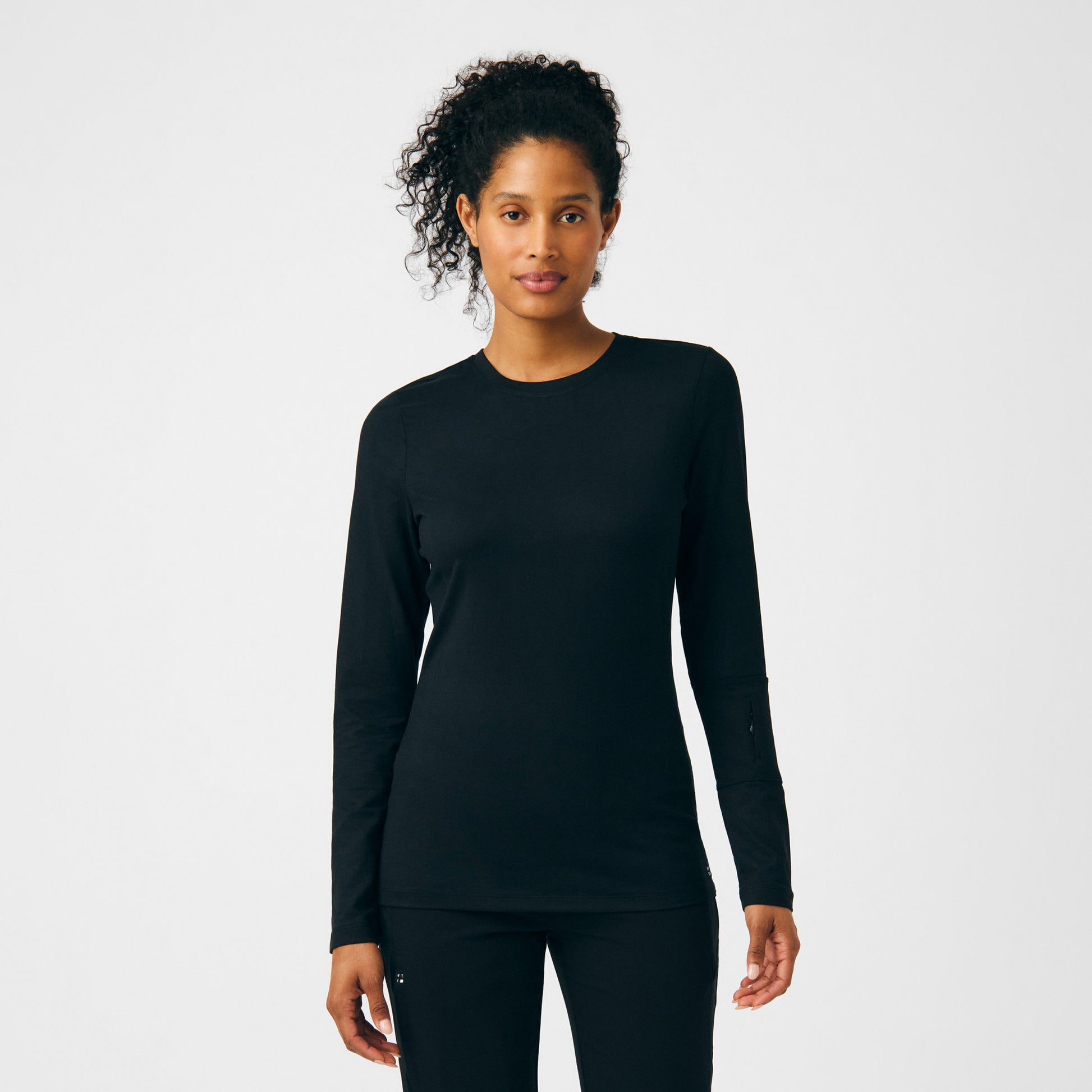 A Modern Fit, crewneck under scrub in a soft knit features a hidden zipper pocket at the forearm for easy access to any essential items. This style doesn't compromise comfort or functionality.