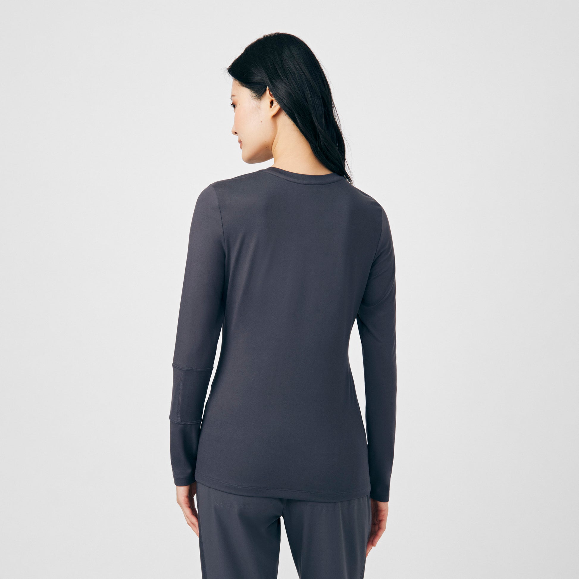 A Modern Fit, crewneck under scrub in a soft knit features a hidden zipper pocket at the forearm for easy access to any essential items. This style doesn't compromise comfort or functionality.