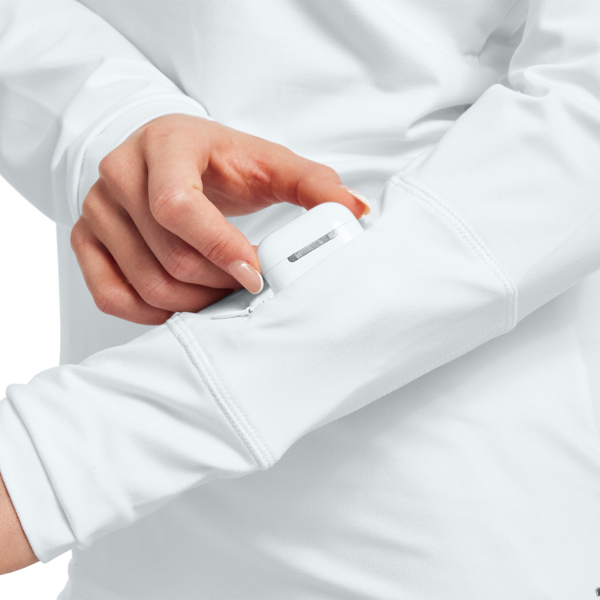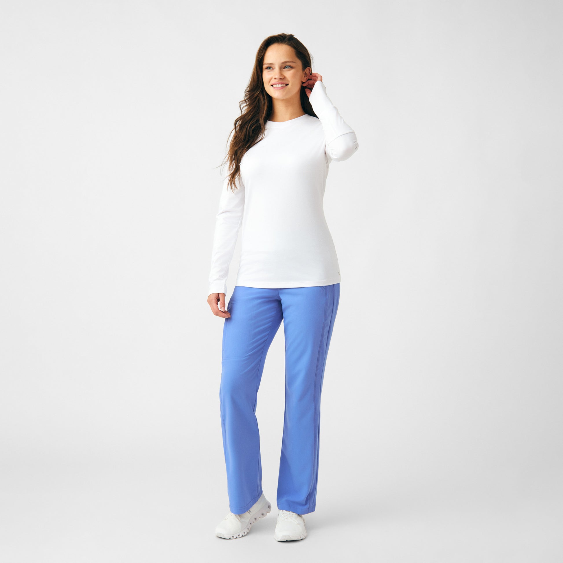 A Modern Fit, crewneck under scrub in a soft knit features a hidden zipper pocket at the forearm for easy access to any essential items. This style doesn't compromise comfort or functionality.