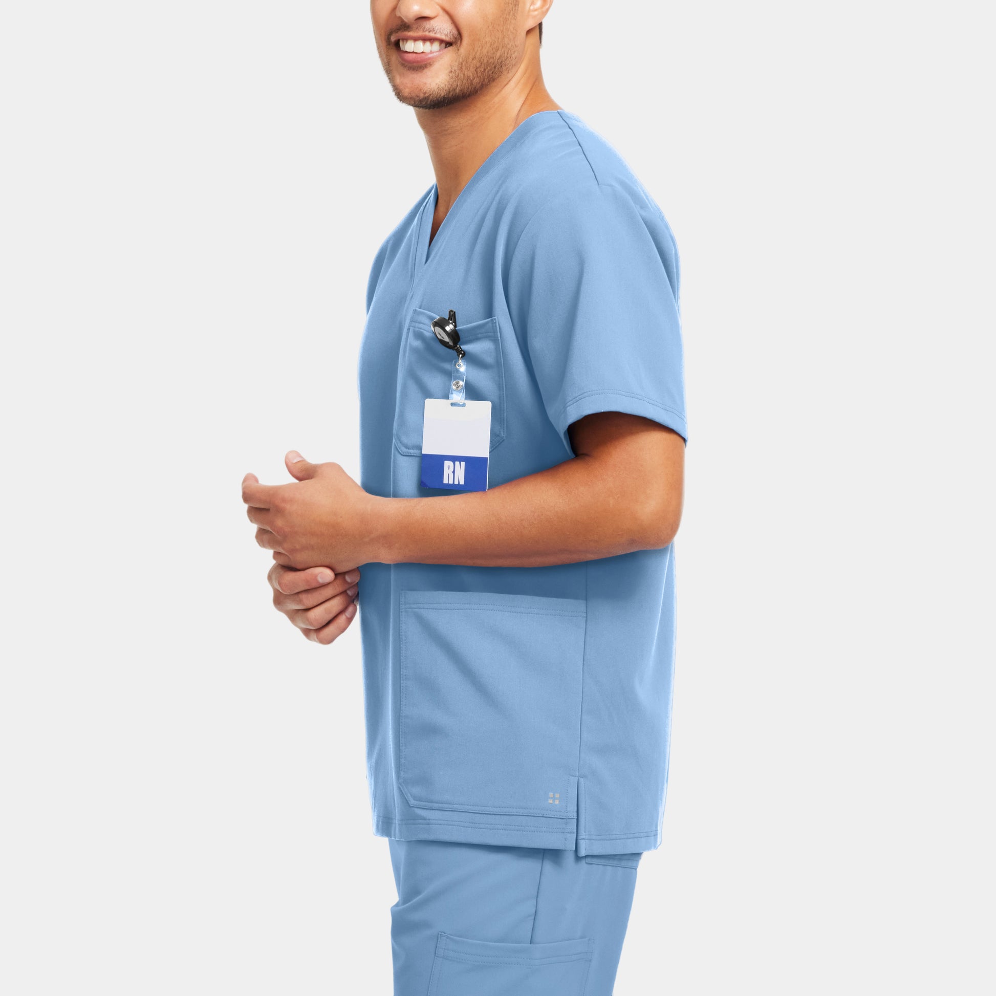 This men's V-neck top features 1 chest pocket and 2 lower patch pockets to help keep your items readily available and secure. Side hem slits provide an easy fit and extra mobility.