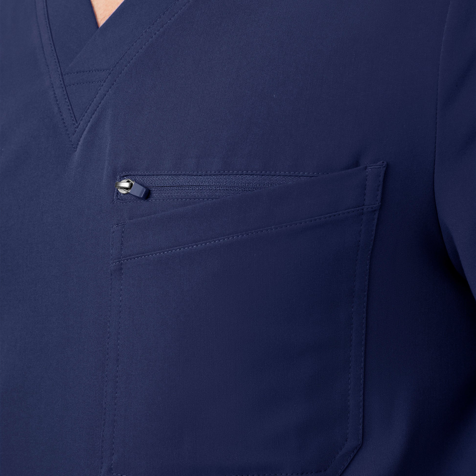 Place OrderThis men's V-neck tuckable top with a modern fit includes a double chest pocket featuring 1 zipper chest pocket and 1 chest patch pocket. Two additional side hip pockets keep items secured and available. Side hem slits provide extra mobility and comfort.