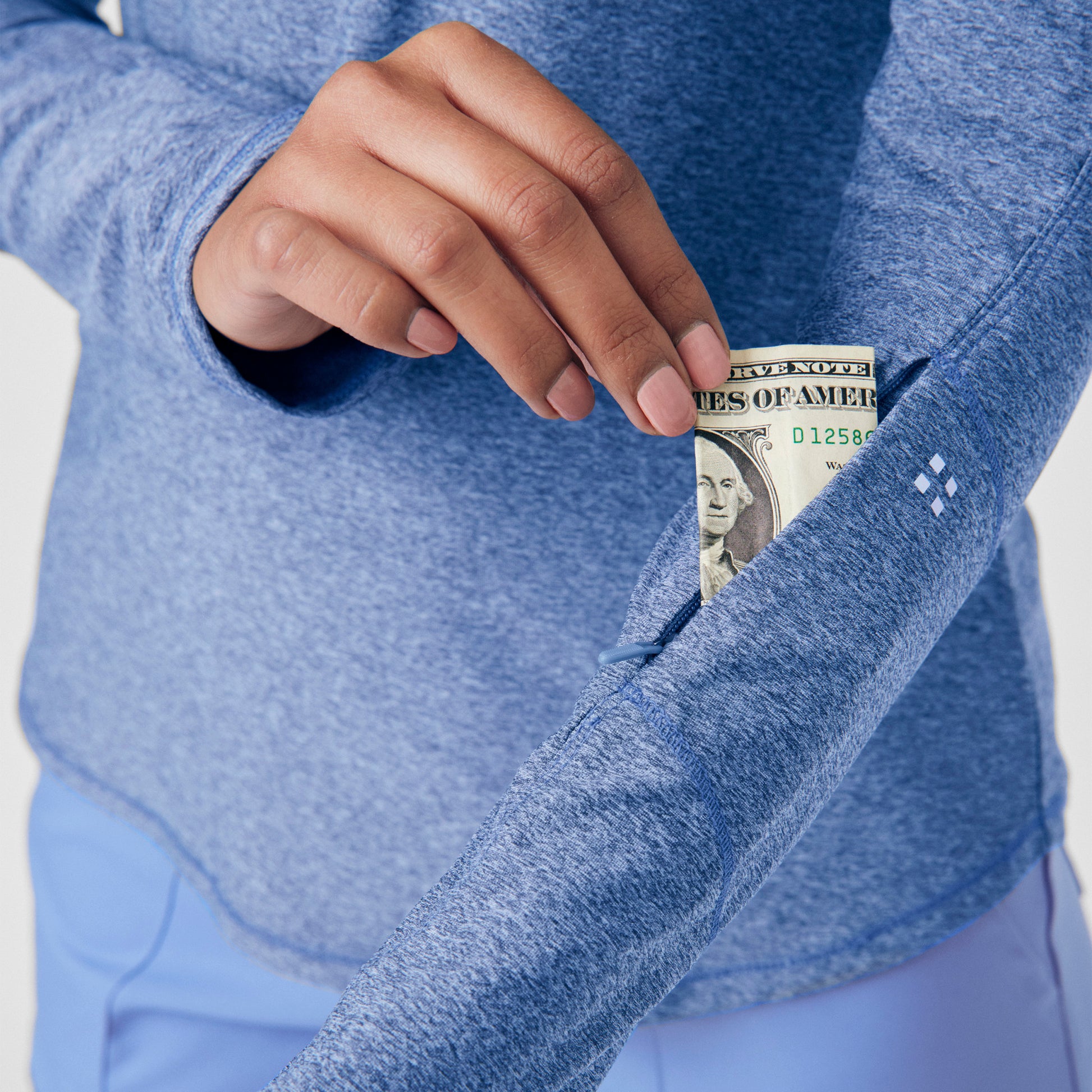 - 1 hidden forearm zipper pocket